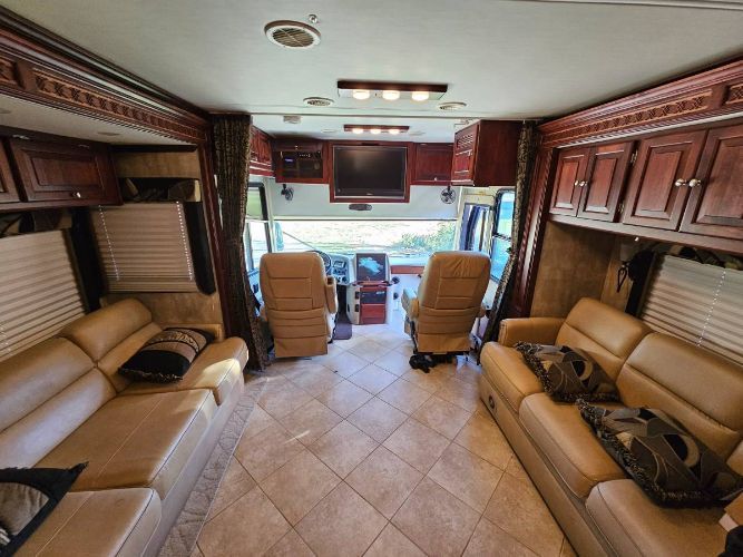 2008 Tiffin Phaeton 42QRH This luxurious motorhome comes fully loaded with features that will enhance your travel experience. The exterior boasts full body paint in Sunlit Sand, complemented by four slide-outs and two power awnings with a wind sensor. Built on a Spartan Chassis, it ensures a smooth and stable ride, while backup and side cameras provide added safety and convenience. With ample storage, including two pass-through storage bays and basement storage, you'll have plenty of room for all your gear. The Cummins engine has less than 23,000 miles and is paired with a 6-speed Allison transmission for optimal performance. The interior is designed for comfort and convenience, featuring a Sleep Number king bed, washer and dryer, and a wardrobe suite. Corian counters, day and night shades, and cherry woodwork add a touch of elegance. The dinette with chairs provides a cozy space for meals, while the stainless steel residential fridge, cooktop, and convection oven/microwave combo make cooking a breeze. Entertainment is also a highlight, with four TVs, including an outside entertainment system with a home theater sound system, satellite dish, and a premium sound system. Dual air units and a furnace ensure year-round comfort. The motorhome has brand new Michelin tires and has been stored in an enclosed building and barely used. It is in almost new condition. Located in Tupelo, MS 38803 For more information, please call 833-265-6113 and mention ID 68101435