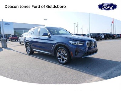 Phytonic Blue Metallic 2022 BMW X3 xDrive30i AWD 2.0L I4 TwinPower Turbo 8-Speed Automatic Sport Connected Package Pro, Premium Package 2 (Gesture Control, Heated Front Seats, Heated Steering Wheel, Lumbar Support, and Panoramic Moonroof), 8-Speed Automatic Sport, 12 Speakers, 3.385 Axle Ratio, 4-Wheel Disc Brakes, ABS brakes, Air Conditioning, Alloy wheels, AM/FM Radio, AM/FM radio: SiriusXM with 360L, Apple CarPlay & Android Auto Compatibility, Auto High-beam Headlights, Auto-dimming door mirrors, Auto-dimming Rear-View mirror, Automatic temperature control, BMW Assist eCall, BMW TeleServices, Brake assist, Bumpers: body-color, Comfort Access Keyless Entry, ConnectedDrive Services, Delay-off headlights, Driver door bin, Driver vanity mirror, Dual front impact airbags, Dual front side impact airbags, Electronic Stability Control, Emergency communication system: BMW Assist eCall, Enhanced Bluetooth, Exterior Parking Camera Rear, Four wheel independent suspension, Front anti-roll bar, Front Bucket Seats, Front Center Armrest, Front dual zone A/C, Front reading lights, Fully automatic headlights, Garage door transmitter, Genuine wood dashboard insert, Genuine wood door panel insert, Heated door mirrors, Hi-Fi Sound System, Illuminated entry, Knee airbag, Live Cockpit Pro w/Navigation, Low tire pressure warning, Memory seat, Navigation, Navigation System, Occupant sensing airbag, Outside temperature display, Overhead airbag, Panic alarm, Passenger door bin, Passenger vanity mirror, Perforated SensaTec Upholstery, Power door mirrors, Power driver seat, Power Front Seats, Power Liftgate, Power passenger seat, Power steering, Power windows, Radio data system, Rain sensing wipers, Rear air conditioning, Rear anti-roll bar, Rear reading lights, Rear seat center armrest, Rear window defroster, Rear window wiper, Remote keyless entry, Roof rack: rails only, Security system, SiriusXM w/360L, Speed control, Speed-sensing steering, Speed-Sensitive Wipers, Split folding rear seat, Spoiler, Sport Seats, Sport steering wheel, Steering wheel mounted audio controls, Tachometer, Telescoping steering wheel, Tilt steering wheel, Traction control, Trip computer, Turn signal indicator mirrors, Variably intermittent wipers, Wheels: 19 x 7.5 Y-Spoke (Style 693), and WiFi Hotspot.21/28 City/Highway MPG 21/28 City/Highway MPG