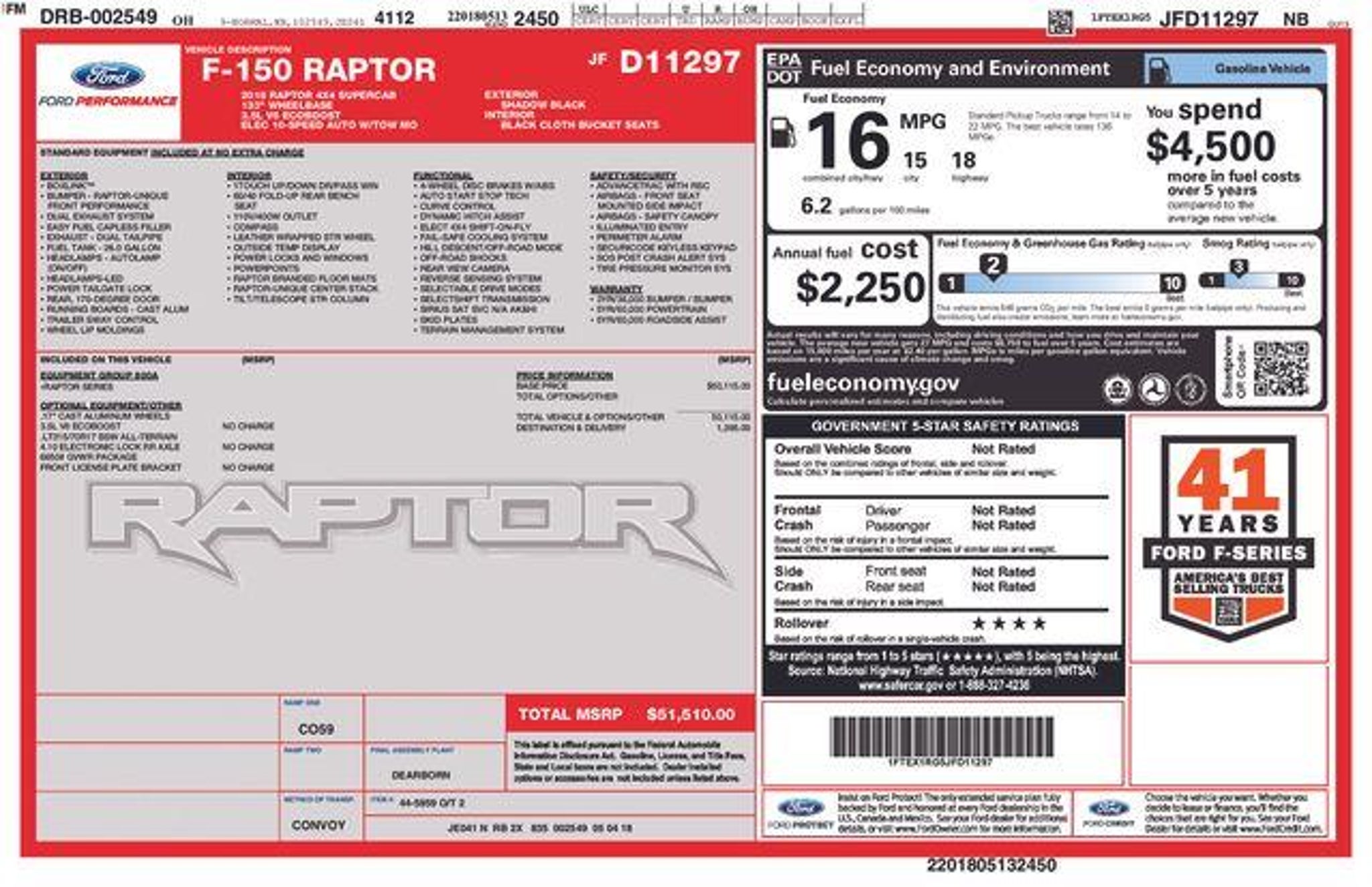 New Price! Shadow Black 2018 Ford F-150 Raptor 4WD 10-Speed Automatic 3.5L V6 EcoBoost This 2018 Ford F-150 is rare!, 17 Cast Aluminum Wheels, Electronic Locking w/4.10 Axle Ratio, Equipment Group 800A Base, Exterior Parking Camera Rear, Rear Parking Sensors, SYNC. Odometer is 29313 miles below market average! Awards: * JD Power Automotive Performance, Execution and Layout (APEAL) Study * Motor Trend Automobiles of the year * 2018 KBB.com Brand Image Awards * 2018 KBB.com 10 Most Awarded Brands