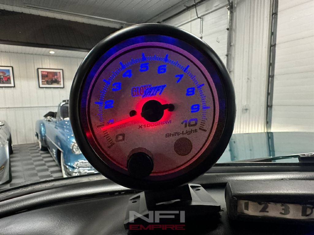 Inside, the cab has been cleanly updated with modern AutoMeter gauges monitoring oil pressure, fuel level, water temperature, voltage, tachometer, and speedometer. The suspension setup has been modernized with a four-link rear system and coilovers on all four corners, providing improved ride quality and handling. Stopping power comes from front disc brakes paired with rear drums, and the truck runs a 2.56 rear gear ratio for relaxed cruising.