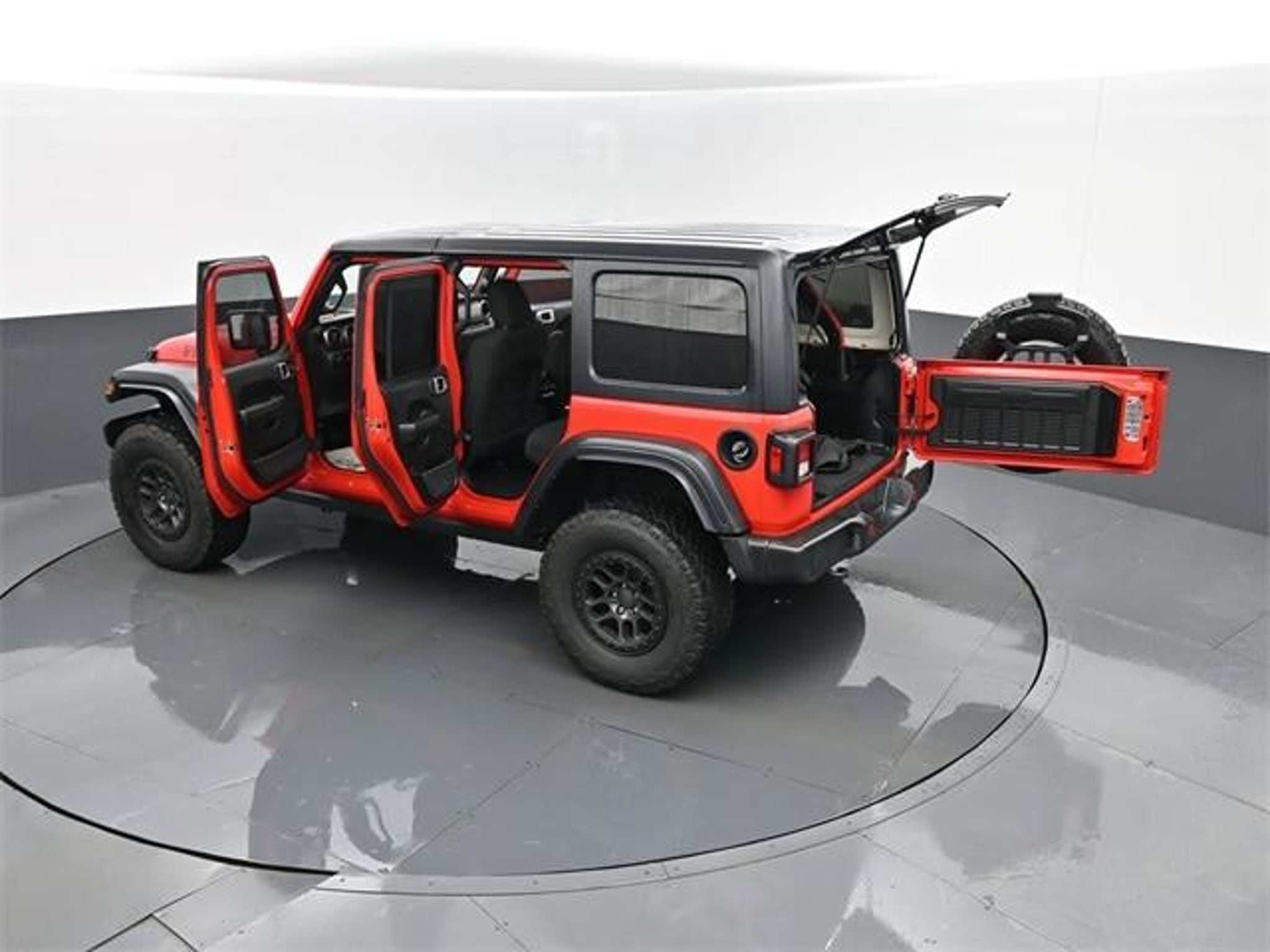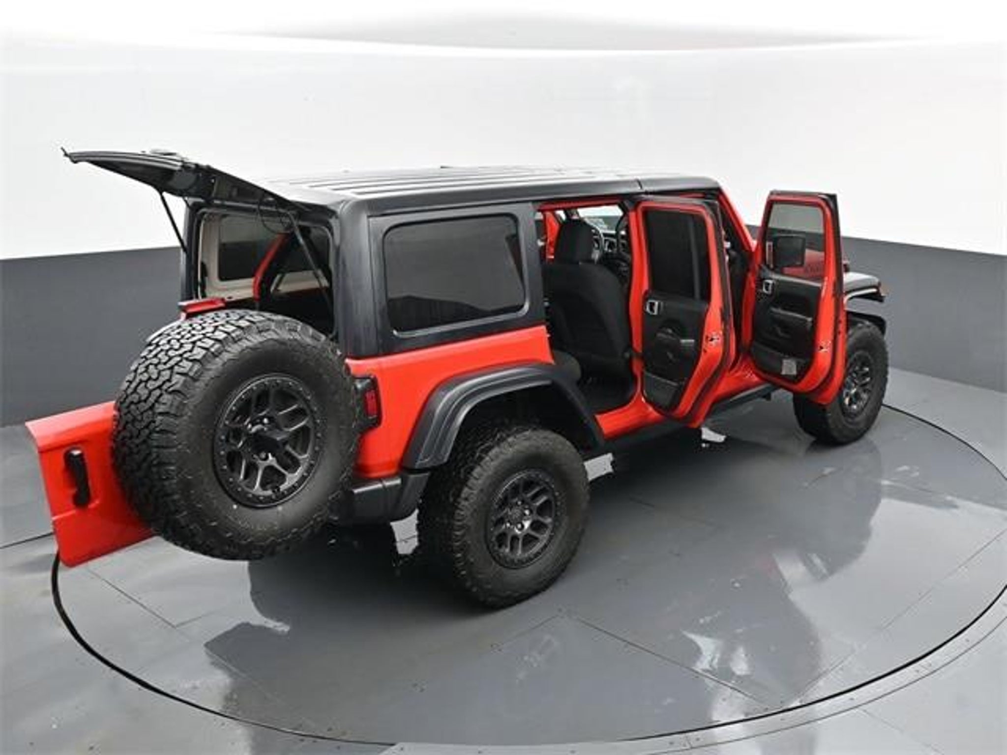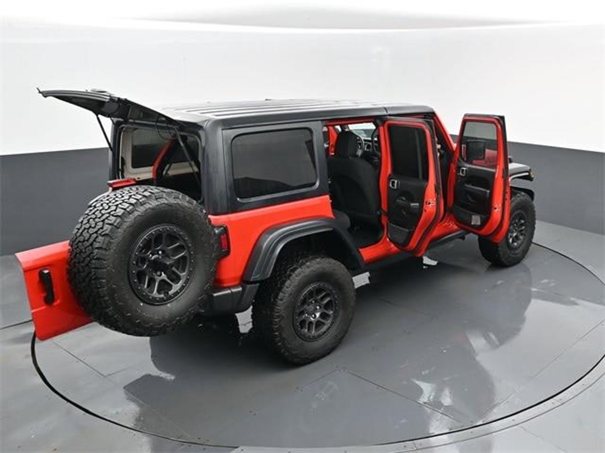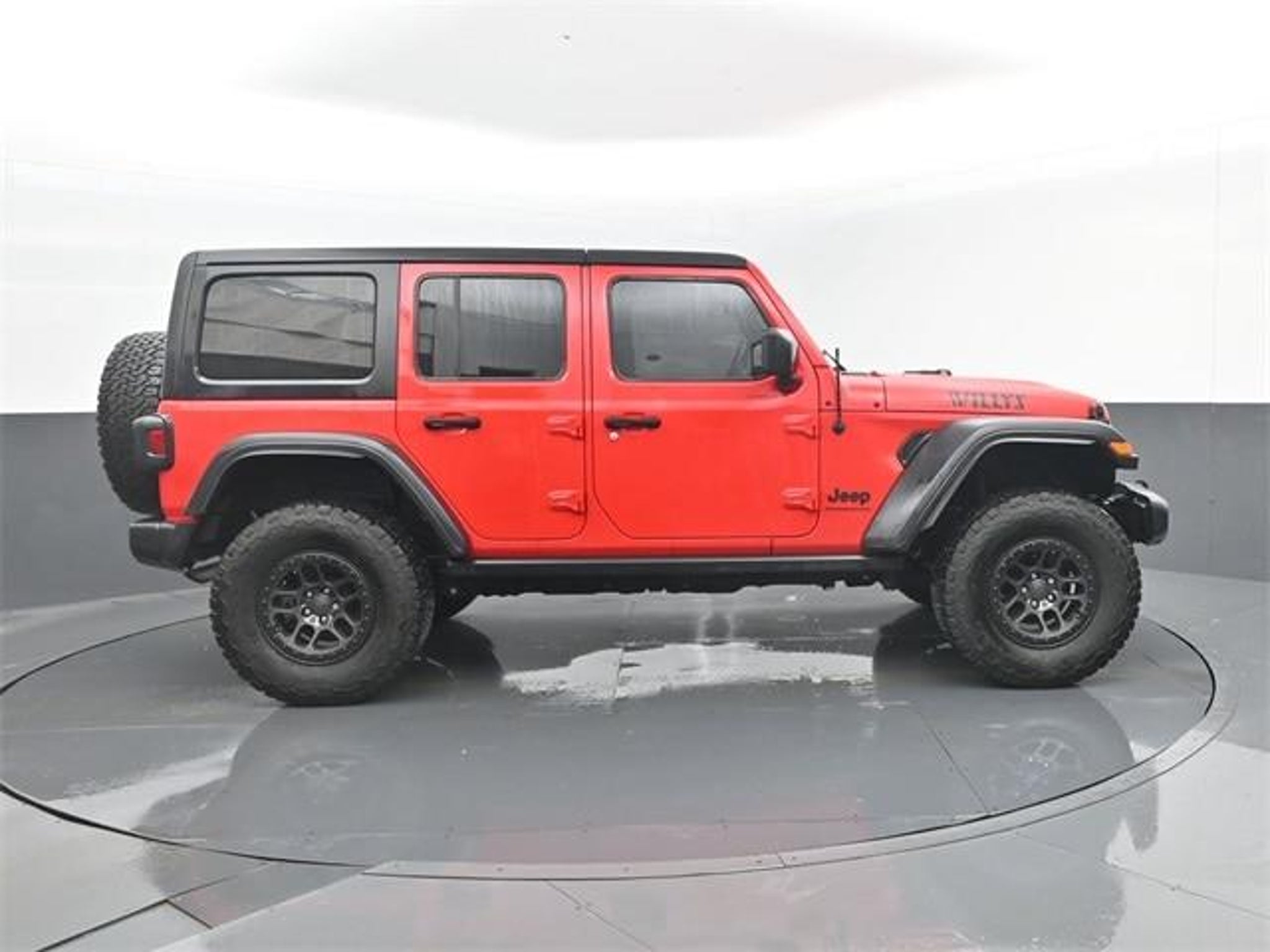 This 2023 Wrangler Willys 4WD includes heated seats, heated steering wheel, Alpine Premium Audio, Uconnect 7, Apple CarPlay/Android Auto, black 3-piece hard top, beadlock-capable wheels, Dana HD axles, and all-weather mats. Two-owner Ohio lease with one minor accident and consistent dealer-performed oil changes.