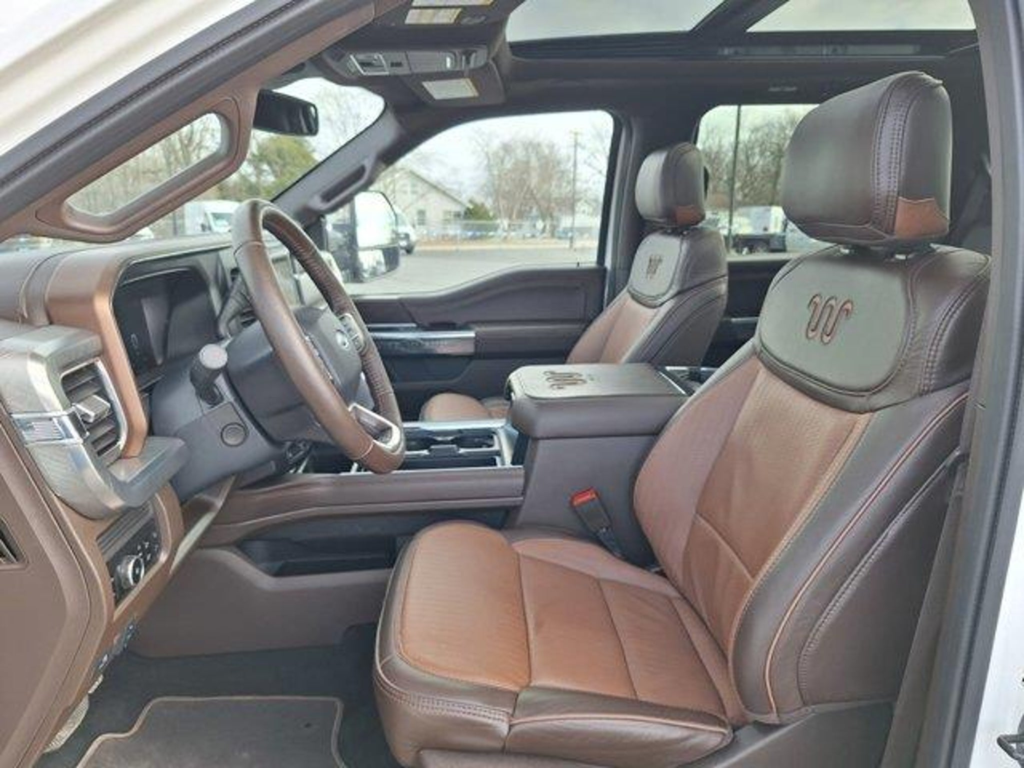 2025 Ford F-350SD King Ranch 4D Crew Cab ***** $50 dollars off your first 2 Oil Changes ***** F-350 SuperDuty King Ranch, 4D Crew Cab, 6.7L High Output Power Stroke V8 Diesel, 10-Speed Automatic, 4WD, White Metallic, Java Leather, 5th Wheel/Gooseneck Hitch Prep Package, Chrome Door Handles, Chrome Exhaust Tip, Chrome Front and Rear Bumpers, Chrome Package, Electronic-Locking with 3.73 Axle Ratio, Flow-Through Console, FX4 Off-Road Package, Gooseneck Hitch Kit, GVWR: 12,000 Lb Payload Package, Heavy-Service Front Suspension Package, Hill Descent Control, Navigation System, Off-Road Specifically Tuned Shock Absorbers, Order Code 710A, Radio: B&O Unleashed Sound System by Bang & Olufsen, SiriusXM Radio with 360L, SYNC 4 with Enhanced Voice Recognition, Unique Chrome Mirror Caps, Unique FX4 Off-Road Box Decal, Unique King Ranch Leather 40/Console/40 Seats, Wheels: 20 Bright Machined Cast Aluminum, Wheels: 20 Chrome PVD Aluminum, 14 Speakers, 4-Wheel Disc Brakes, ABS brakes, Adjustable pedals, Air Conditioning, Alloy wheels, AM/FM radio: SiriusXM with 360L, Auto High-beam Headlights, Auto tilt-away steering wheel, Auto-dimming Rear-View mirror, Automatic temperature control, Brake assist, Compass, Delay-off headlights, Driver door bin, Driver vanity mirror, Dual front impact airbags, Dual front side impact airbags, Electronic Stability Control, Emergency communication system: SYNC 4 911 Assist, Engine Block Heater, Front and Rear Wheel Well Liners, Front anti-roll bar, Front Bucket Seats, Front Center Armrest, Front dual zone A/C, Front fog lights, Front License Plate Bracket, Front reading lights, Fully automatic headlights, Garage door transmitter, Heads-Up Display, Heated door mirrors, Heated front seats, Heated rear seats, Heated steering wheel, Illuminated entry, Leather steering wheel, Low tire pressure warning, Memory seat, Outside temperature display, Overhead airbag, Overhead console, Panic alarm, Passenger door bin, Passenger vanity mirror, Pedal memory, Power door mirrors, Power driver seat, Power passenger seat, Power steering, Power windows, Rain sensing wipers, Rear reading lights, Rear seat center armrest, Rear step bumper, Rear window defroster, Remote keyless entry, Security system, Speed control, Split folding rear seat, Steering wheel memory, Steering wheel mounted A/C controls, Steering wheel mounted audio controls, Tachometer, Telescoping steering wheel, Tilt steering wheel, Tough Bed Spray-in Bedliner, Traction control, Trip computer, Turn signal indicator mirrors, Twin Panel Power Moonro