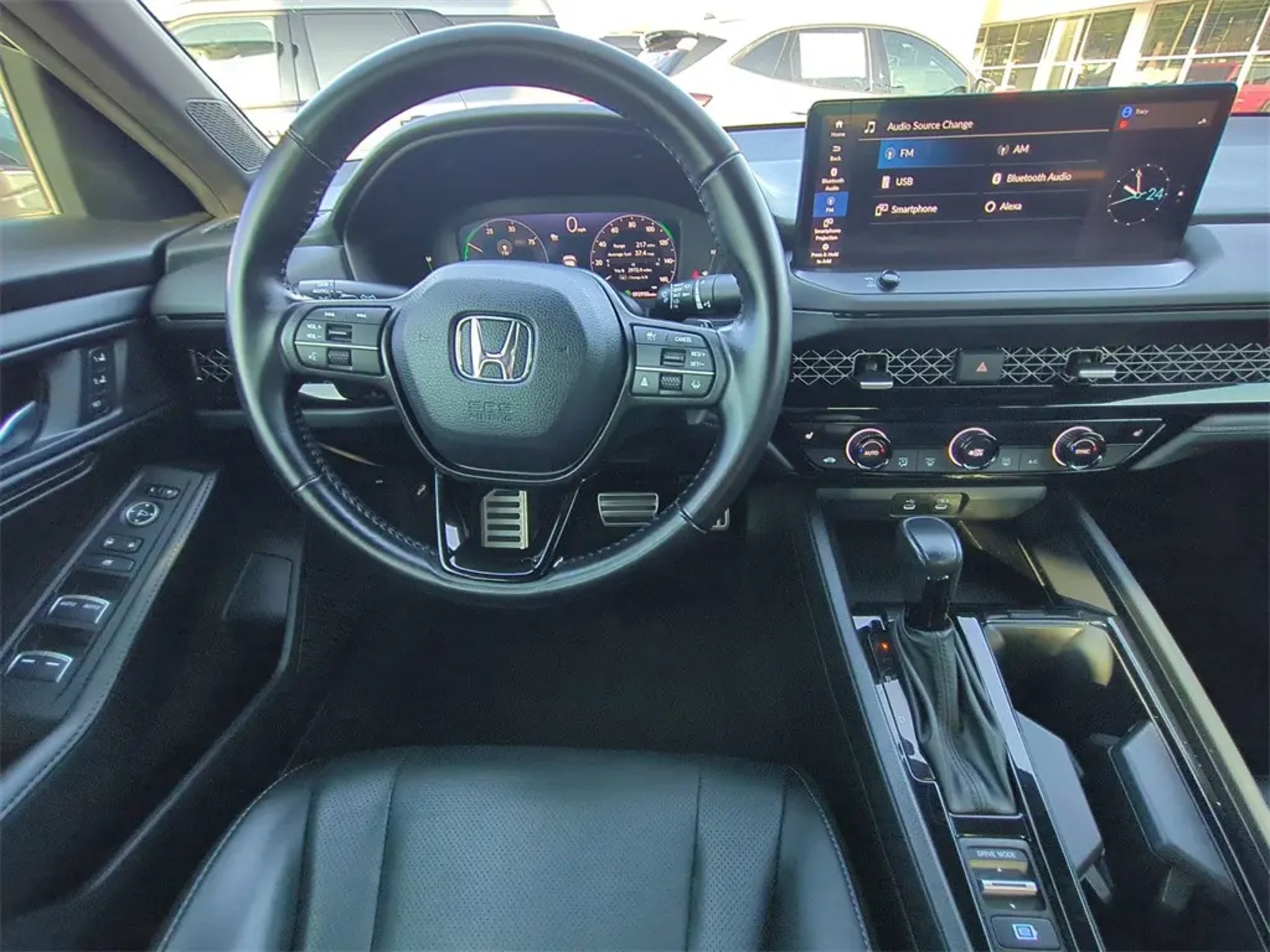 Courtesy Ford and Lincoln of Rome 101 Hwy 411 E Rome, Ga 30161 706.235.4453. CARFAX One-Owner. 46/41 City/Highway MPG Platinum White Pearl 2023 Honda Accord Hybrid Sport-L FWD Sport-L **LOCAL TRADE**, 12 LCD Productivity Touchscreen, Adaptive Cruise Control, Android Auto, Apple Carplay, Auto Emergency Braking, Backup Camera, Blind Spot Monitoring, Bluetooth w/ Audio Streaming, Driver Attention Warning, Foward Collison Alert, Leather Seats, Memory Package, Parking Sensors, Power Mirror Package, Power Package, Rear Cross Traffic Alert, Reverse Brake Assist, Reverse Sensing, Safety Package, WiFi Hotspot Capable, 4D Sedan, 2.0L 16V DOHC, eCVT, FWD, 4-Wheel Disc Brakes, 8 Speakers, ABS brakes, Adaptive Cruise Control: Adaptive Cruise Control (ACC) with Low-Speed Follow, AM/FM radio, Apple CarPlay/Android Auto, Auto High-beam Headlights, Automatic temperature control, Brake assist, Compass, Delay-off headlights, Electronic Stability Control, Exterior Parking Camera Rear, Four wheel independent suspension, Front Center Armrest, Front dual zone A/C, Fully automatic headlights, Heated Front Bucket Seats, Illuminated entry, Lane departure: Lane Keeping Assist System (LKAS) active, Leather Shift Knob, Leather steering wheel, Leather-Trimmed Seat Trim, Low tire pressure warning, Memory seat, Outside temperature display, Overhead console, Panic alarm, Power door mirrors, Power driver seat, Power moonroof, Power passenger seat, Power steering, Power windows, Radio data system, Radio: 180-Watt Audio System, Rear seat center armrest, Remote keyless entry, Security system, Speed-sensing steering, Speed-Sensitive Wipers, Split folding rear seat, Spoiler, Steering wheel mounted audio controls, Telescoping steering wheel, Tilt steering wheel, Traction control, Trip computer, Wheels: 19 x 8.5J Matte Berlina Black. Certified. Certification Program Details: Ford Blue Certified Details: * Vehicle History * 139 Point Inspection * Roadside Assistance * Limited Warranty: 3 Month/4,000 Mile (whichever comes first) after new car warranty expires or from certified purchase date * Warranty Deductible: $100 * Transferable Warranty * and 11,000 FordPass Rewards Points to use toward first maintenance visit **NOT ALL PRE-OWNED CAR/TRUCKS COME WITH 2 KEYS**