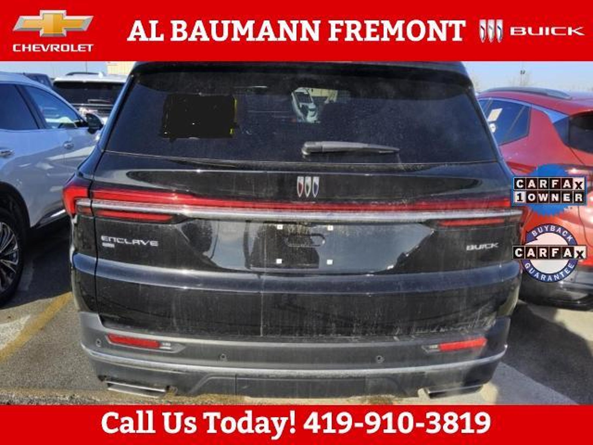 New Price! Priced below KBB Fair Purchase Price! Odometer is 8141 miles below market average! CARFAX One-Owner. Clean CARFAX. Ebony Twilight Metallic 2025 Buick Enclave Preferred AWD 4D Sport Utility 2.5L DOHC 8-Speed Automatic AWD ONE OWNER CLEAN CARFAX!! Car shopping is sometimes inconvenient and stressful, and we want to take the hassle out of this all-too-common experience. If you?re interested in more convenience, less frustration and a process that works efficiently to meet your needs as a customer. Al BAUMANN AUTO GROUP. The Best Price Up Front Cash Offers For Any Trade-In Multiple Financing Quotes In Minutes A Team Of Dedicated Salespeople. CALL,419-332-8236 or {1-866-330-3601}, AWD, Front Mounting License Plate Bracket Package, Navigation System, Preferred Equipment Group 1SD, 12 Speakers, 3rd row seats: split-bench, 4-Wheel Disc Brakes, ABS brakes, Air Conditioning, Alloy wheels, AM/FM radio: SiriusXM with 360L, Auto High-beam Headlights, Auto-dimming door mirrors, Auto-dimming Rear-View mirror, Automatic temperature control, Bose Premium 12-Speaker Audio System, Brake assist, Bumpers: body-color, Compass, Delay-off headlights, Deleted OnStar Basics, Driver 4-Way Power Lumbar Seat Adjuster, Driver 8-Way Power Seat Adjuster, Driver door bin, Driver vanity mirror, Dual front impact airbags, Dual front side impact airbags, Electronic Stability Control, Emergency communication system: OnStar and Buick connected services capable, Four wheel independent suspension, Front anti-roll bar, Front Bucket Seats, Front Center Armrest, Front dual zone A/C, Front Passenger 4-Way Power Lumbar Seat Adjuster, Front Passenger 6-Way Power Seat Adjuster, Front reading lights, Fully automatic headlights, Heated door mirrors, Heated Driver and Front Passenger Seats, Heated front seats, Heated steering wheel, Illuminated entry, Leather steering wheel, Leatherette Seat Trim, Low tire pressure warning, Occupant sensing airbag, Outside temperature display, Overhead airbag, Overhead console, Panic alarm, Passenger door bin, Passenger vanity mirror, Power door mirrors, Power driver seat, Power Liftgate, Power passenger seat, Power steering, Power windows, Premium audio system: Buick Infotainment System, Radio data system, Radio: Infotainment Center, Rear air conditioning, Rear anti-roll bar, Rear reading lights, Rear side impact airbag, Rear window defroster, Rear window wiper, Remote keyless entry, Security system, SiriusXM with 360L Trial Subscription, Speed control, Speed-sensing steering, Spoiler, Steering wheel mo