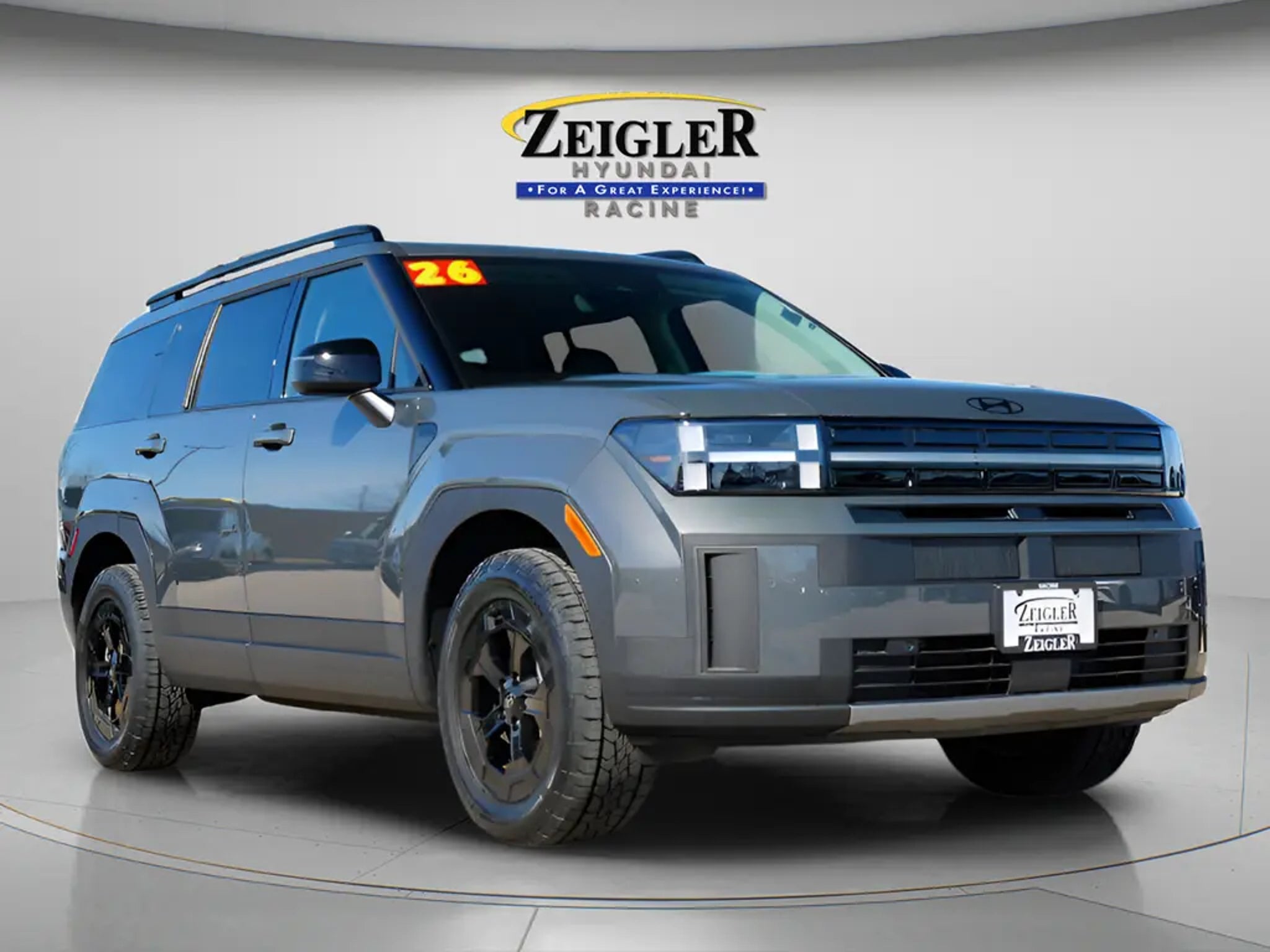 CARFAX One-Owner. 2026 Hyundai Santa Fe XRT AWD 2.5L I4 8-Speed Automatic with SHIFTRONIC Ecotronic Gray AWD, Black Premium Synthetic. Zeigler Hyundai Genesis of Racine is excited to offer this 2026 Hyundai Santa Fe in Ecotronic Gray with Black Premium Synthetic. This Santa Fe is well equipped with AWD and Black Premium Synthetic, along with Option Group 01, AWD, Black Premium Synthetic, 3rd row seats: bench, 4-Wheel Disc Brakes, 6 Speakers, ABS brakes, Air Conditioning, All Season Fitted Liners, Alloy wheels, AM/FM radio: SiriusXM, Apple CarPlay & Android Auto, Auto High-beam Headlights, Automatic temperature control, Brake assist, Bumpers: body-color, Cargo Blocks, Cargo Cover/Screen, Cargo Net, Cargo Tray, Carpeted Floor Mats, Delay-off headlights, Driver door bin, Driver vanity mirror, Dual front impact airbags, Dual front side impact airbags, Electronic Stability Control, Emergency communication system, Exterior Parking Camera Rear, First Aid Kit, Four wheel independent suspension, Front anti-roll bar, Front Bucket Seats, Front Center Armrest, Front dual zone A/C, Front reading lights, Fully automatic headlights, H-Tex Leatherette Seat Trim, Heated door mirrors, Heated Front Bucket Seats, Heated front seats, Illuminated entry, Knee airbag, Leather steering wheel, Low tire pressure warning, Navigation System, Occupant sensing airbag, Outside temperature display, Overhead airbag, Overhead console, Panic alarm, Passenger door bin, Passenger vanity mirror, Power door mirrors, Power driver seat, Power Liftgate, Power moonroof, Power steering, Power windows, Radio: AM/FM/HD Display Audio, Rear anti-roll bar, Rear seat center armrest, Rear side impact airbag, Rear window defroster, Rear window wiper, Remote keyless entry, Security system, Speed control, Speed-sensing steering, Split folding rear seat, Spoiler, Steering wheel mounted audio controls, Tachometer, Telescoping steering wheel, Tilt steering wheel, Traction control, Trip computer, Turn signal indicator mirrors, Variably intermittent wipers, and Wheels: 18 x 7.5J Dark Alloy and additional premium features designed for comfort, performance, and technology. "FOR A GREAT EXPERIENCE,"� visit Zeigler Hyundai of Racine"”where we take pride in treating our customers like family. With a 4.7 Google rating, we are one of the highest-rated Hyundai dealers in Wisconsin. Every vehicle undergoes a multi-point safety inspection and is professionally cleaned and disinfected for your peace of mind. Conveniently located off I-94 at Exit 333, we proudly serve Racine, Mount Pleasant, Sturtevant, Kenosha, Milwaukee, Oak Creek, Waukesha, and surrounding areas. Our Factory-Certified Sales Consultants consistently earn top customer satisfaction ratings across Southeast Wisconsin. We specialize in new Hyundai, Certified Pre-Owned Hyundai, Genesis, and a wide selection of vehicles to fit all budgets. Competitive purchase and lease options are available. Browse our full inventory online at zeiglerhyundairacine.com. Don't see the exact vehicle you want? We'll help locate one and can arrange shipping or delivery if needed. Price may exclude certification, accessories, LoJack, packages, taxes, doc fees, or other dealer fees. Dealer not responsible for pricing errors. Used vehicle values vary based on mileage, condition, and usage. Some vehicles may be subject to unrepaired safety recalls. Check recall status by VIN at vinrcl.safercar.gov. See dealer for complete details. 20/28 City/Highway MPG 20/28 City/Highway MPG Zeigler relies on the help of third parties and various data feeds to maintain in its website(s). Although every reasonable effort has been made to ensure the accuracy of the information contained on this site, absolute accuracy cannot be guaranteed and mistakes occasionally happen. Contact Zeigler to verify vehicle availability. Although every reasonable effort has been made to ensure the accuracy of the information contained on this site, absolute accuracy cannot be guarant