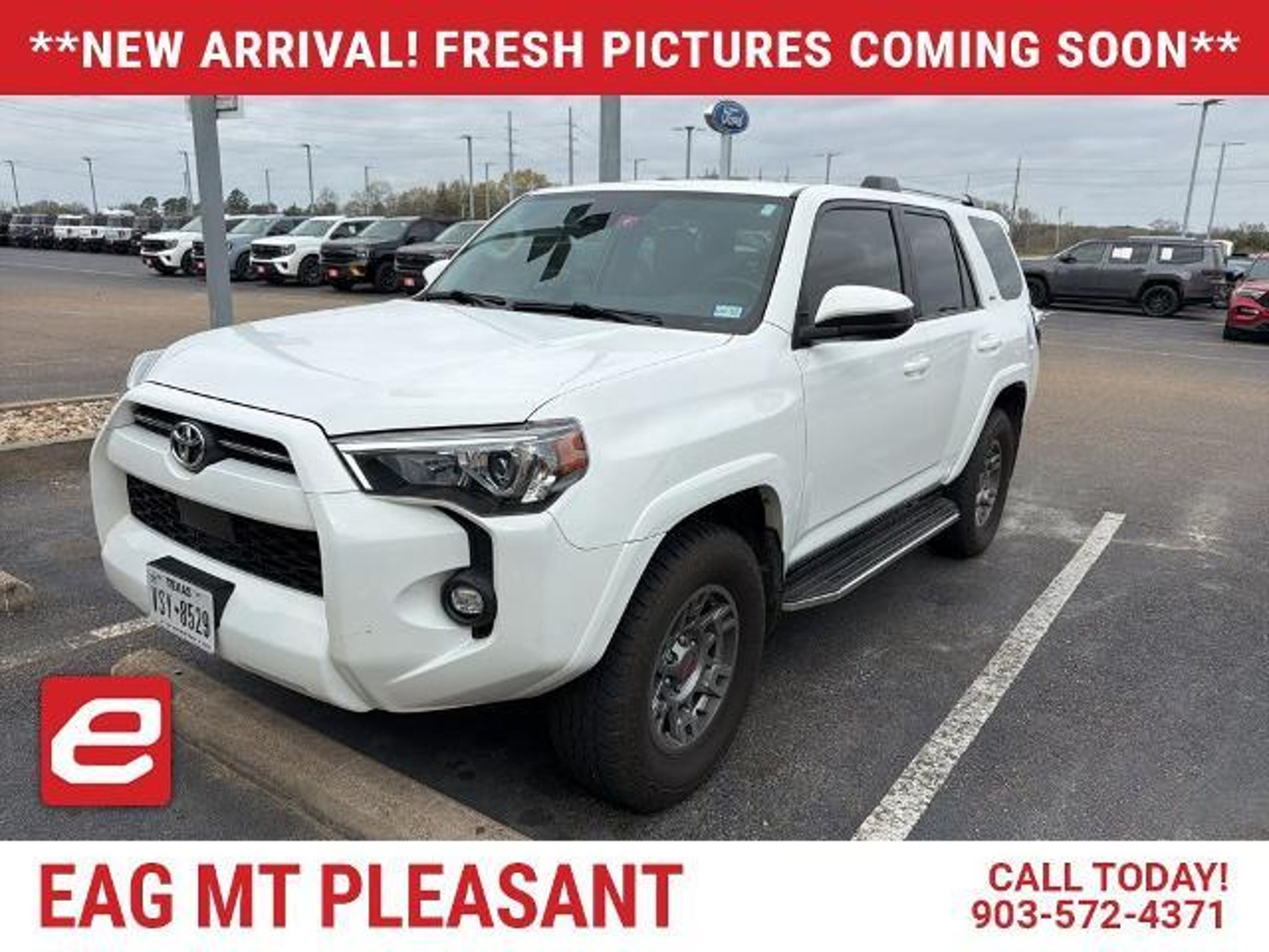 Experience the Remarkable 2021 Toyota 4Runner SR5: Rugged Capability, Refined Comfort Introducing the 2021 Toyota 4Runner SR5, a true icon of the SUV world. This versatile and capable vehicle is the perfect companion for your next adventure, whether you're conquering the great outdoors or navigating the urban jungle. With its powerful 4.0L V6 engine, 4WD capabilities, and an array of cutting-edge features, the 4Runner SR5 is ready to take on any challenge you throw its way. - **NAVIGATION** - **KEYLESS ENTRY** - **BACKUP CAMERA** - **BLUETOOTH HANDS-FREE CALLING** - **APPLE CARPLAY & ANDROID AUTO** - **TOWING PACKAGE** - **4X4** - **3RD ROW SEATING** - **ADAPTIVE CRUISE CONTROL** - **LANE-KEEPING ASSIST** The 4Runner SR5 is more than just a rugged SUV ? it's a true lifestyle companion. With its spacious interior, versatile cargo capacity, and advanced technology features, you'll have everything you need to tackle your daily commute, weekend getaways, and everything in between. Imagine the possibilities with the 4Runner SR5's impressive capabilities. Venture off the beaten path with its 4WD system, tow your boat or trailer with the available towing package, and stay connected with the intuitive infotainment system featuring Apple CarPlay and Android Auto. And with the available third-row seating, you can bring the whole family along for the ride. But the 4Runner SR5 isn't just about raw power and capability ? it also offers a refined and comfortable driving experience. The premium audio system with dynamic navigation will keep you entertained, while the adaptive cruise control and lane-keeping assist features provide added peace of mind on the road. Whether you're an outdoor enthusiast, a growing family, or simply someone who values versatility and capability, the 2021 Toyota 4Runner SR5 is the perfect vehicle for you. Experience the remarkable performance, technology, and style that this SUV has to offer. Visit our showroom today and let us help you discover the 4Runner that's right for you. This vehicle is located at EAG Mt. Pleasant, but can be made available upon request. The price listed does not include tax, title, license, or documentation fees ($225). We are located just west of Titus Regional Medical Center on the I-30 frontage road.