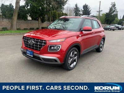 Certified. One Owner, Fresh Trade In, Local Trade In, Hyundai Factory Certified CPO Vehicle. 30/33 City/Highway MPGHyundai Certified Used Vehicles Details: * Vehicle History * Powertrain Limited Warranty: 120 Month/100,000 Mile (whichever comes first) from original in-service date * Warranty Deductible: $50 * Includes 10-year/Unlimited Mileage Roadside Assistance with Rental Car and Trip Interruption Reimbursement; Please See Dealers for Specific Vehicle Eligibility Requirements. 10-Year/100,000 Mile Hybrid/EV Battery Warranty. 3-Months SiriusXM Trial Subscription. Complimentary 1 Year (Connected Care & Remote Pkgs). * Limited Warranty: 60 Month/60,000 Mile (whichever comes first) from original in-service date * Roadside Assistance * 173 Point Inspection2021 Hyundai Venue Scarlet Red Pearl SEL I4At Korum, we provide our customers with real-time value pricing on every vehicle. How? We poll over 70,000 websites hourly to ensure our customers receive the BEST PRICES. We will never inflate vehicle prices or play pricing games as a part of our negotiation strategy with our customers.Located at the corner of River Road and Meridian in downtown Puyallup, WA, we have a large selection of cars, trucks and SUVs. Shop our huge selection of vehicles online or come visit us and take a test drive today. Limitations and exclusions apply. Any vehicle used for business or commercial purposes does not qualify. See dealer for complete details. Customer is responsible for sales tax, title, and license fee. A negotiable $200 documentation fee may be applied. Photos for illustration purposes only.