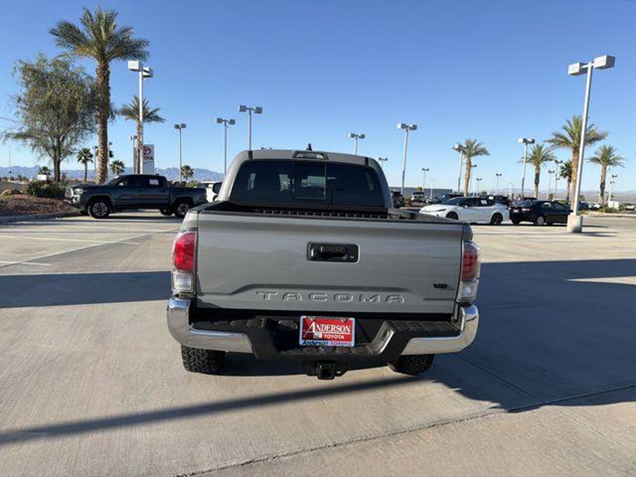 2021 Toyota Tacoma TRD Off-Road V6 RWD Cement This rugged and capable pickup is ready to take on any adventure! With an impressive array of features, this Tacoma is equipped to handle any terrain with ease. Key highlights include: - Blackout Package (TMS) - TRD Off Road Package - LED Fog Lamps with Black Bezel - All-Weather Floor Liners and Door Sill Protectors (TMS) - Blackout Emblem Overlays (TMS) - Bed Lighting Kit (TMS) - Black Chrome Exhaust Tip (TMS) - Truck Bed D-Rings (TMS) - AM/FM radio: SiriusXM - Automatic Temperature Control - 120V/400W Deck Mounted AC Power - Engine Immobilizer - Smart Key with Push Button Start - Brake Assist - Apple CarPlay/Android Auto - Alloy Wheels Powered by a 3.5L V6 engine, this Tacoma delivers an impressive 278 horsepower and 24 highway miles per gallon, making it both powerful and efficient. The 6-speed automatic transmission and rear-wheel-drive configuration ensure a smooth and responsive driving experience, whether you're navigating the city streets or tackling rugged off-road terrain. Its Cement exterior color adds a touch of sophistication, while the TRD Off-Road package equips this Tacoma with the necessary hardware to conquer any challenge. From the Black Overfenders and Black Tailgate Insert to the Black Chrome Exhaust Tip, this Tacoma is built to stand out and perform. Inside, the cabin is packed with a wealth of advanced technology and convenience features, including Automatic Temperature Control, Smart Key with Push Button Start, and a 120V/400W Deck Mounted AC Power outlet. The spacious and well-appointed interior offers ample room for both passengers and cargo, ensuring a comfortable and versatile driving experience. Visit Anderson Toyota today or give our friendly sales staff a call to schedule your test drive, . WHY BUY FROM ANDERSON: All Anderson pre-owned vehicles include a 3-month or 3,000 mile powertrain limited warranty and one-year/15,000 mile (whichever occurs first) vehicle maintenance plan when the vehicle is serviced at an Anderson Auto Group dealership. Out of town customers will be accommodated with free shuttle service from Las Vegas and Phoenix airports and if an overnight stay is needed, discounted nightly rates are available from local hotels. We welcome you to come in and enjoy a positive buying experience and look forward to you joining the Anderson family of customers. DISCLAIMER: Prices, options, specifications and images shown are subject to certain qualifications and availability. Pricing information is not final and may not include taxes, registration, finance and purchase fees. Please confirm vehicle availability and pricing information by calling us at or emailing our internet sales department at . Some exclusions apply, see store for details.