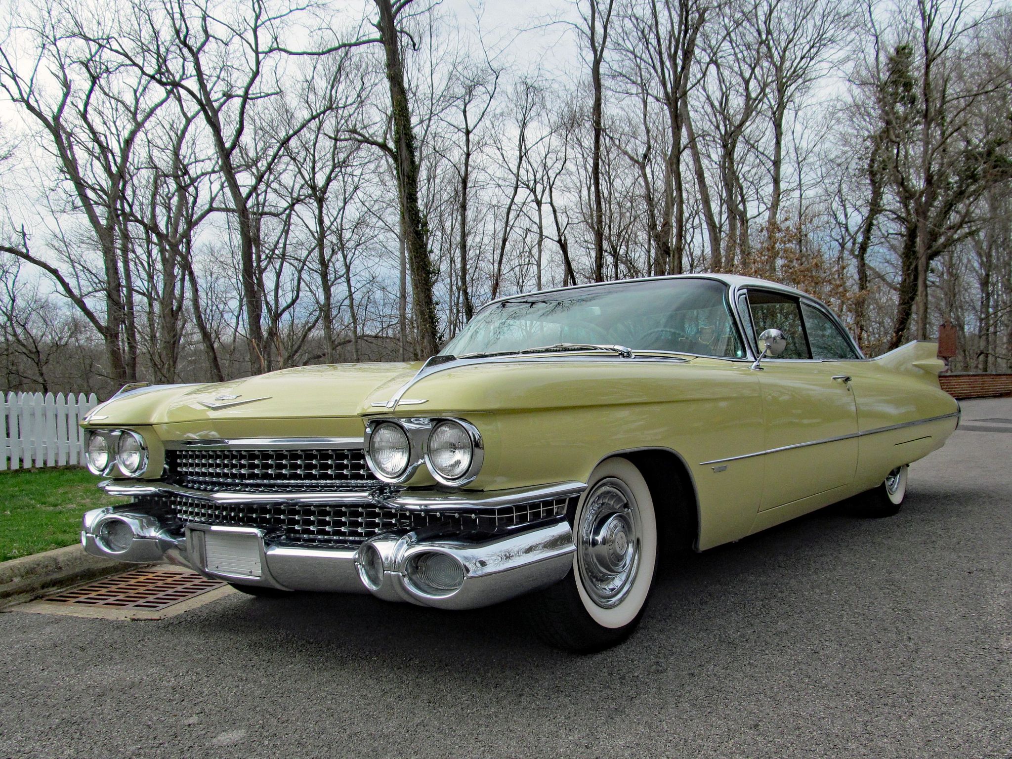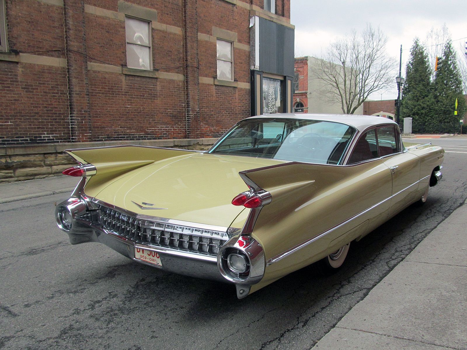 1959 Cadillac Series 62 Coupe. Call Pete or Andy 419-668-1884. The most iconic tailfins ever created! The zenith of jet-age style! Excellent. Style Number 6237. Finished in Color Code Correct number 40 Gotham Gold with Color Code Correct number 12 Dover White roof. The interior is finished in Trim Code Correct number 35 Fawn Mojave Cloth and Fawn Coated Fabric. Numbers Matching Engine, Chassis and Service Tag. Powered by Cadillac’s 390 Cubic Inch V-8 which was rated at 325 horsepower. Dual Exhaust. Hydra-Matic Automatic Transmission. This Cadilac is equipped with lots of great features. Power Windows. Power Steering. Power Brakes. Power Antenna. AM Radio. Clock. Heater / Defroster. Day / Nite Rearview Mirror. Remote Driver Mirror. Rear seat arm rest. E-Z-Eye Tinted Glass. Radial Wide White Wall tires. The Doors even lock and unlock with the key! Ready to Drive, Show and Enjoy. Call Pete or Andy 419-668-1884 BE SURE TO WATCH THE VIDEO!