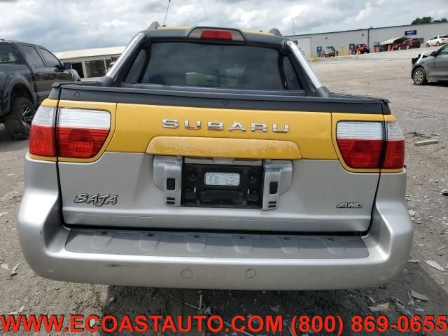 Details > 2003 Subaru Baja AWD For Sale in Bedford, VA Private Party Sellers Click here to place your ad now! You auta tell them you saw the ad in AutaBuy when you call or email. 1/12 2/12 3/12 4/12 5/12 6/12 7/12 8/12 9/12 10/12 11/12 12/12 View 12 Photos View All Add to My Garage Parked in Your Garage! East Coast Auto Source Call: 540-586-5713 Contact Seller: I would like to: Make Offer Check Availability Ask A Question Request More Photos Check Financing Options Send a copy of this message to me Add this listing to my garage Send to Mobile Mileage 204,461 Exterior Color Yellow Stock # K596RCFK VIN 4S4BT61C237100316 2003 Subaru Baja AWD Description: RUNS; AWD; FRONT AND PASSENGER SIDE DAMAGE; PARTS AVAILABLE · Mileage: 204,461 · Color: Yellow Price: $5,995. Mileage 204,461 Exterior Color Yellow Stock # K596RCFK VIN 4S4BT61C237100316 Add to My Garage Parked in Your Garage! Call Seller Message Seller East Coast Auto Source Call: 540-586-5713 Contact Seller: I would like to: Make Offer Check Availability Ask A Question Request More Photos Check Financing Options Send a copy of this message to me Add this listing to my garage Offered for sale by East Coast Auto Source Call 540-586-5713 BEDFORD, VA Mention AutaBuy.ca when you call. Price: $5,995. Offered for sale by East Coast Auto Source Call 540-586-5713 BEDFORD, VA Mention AutaBuy.ca when you call. [entire inventory] Ask Auta Intelligence The first collector-car AI built directly into a classic car marketplace Where is this located? What transmission options did these offer? What makes this model year special? How many Baja AWDs were produced in Yellow? What engine options did these come with? What trim levels were available for this model? When was this model first introduced? What factory options were available on this model? Which years was this body style produced? Tell me about this model How far is this from me? What colors did these come in? What nicknames does this model have? How many of these were produced? Which engines were most common for this year? Can you show me more repairables for a similar price? What makes this model desirable to enthusiasts? What movies featured cars like this? What does this VIN number tell me? Do you have a similar car to sell? List It Now! Questions about this car? Ask Auta Intelligence for production numbers, available options, etc. · Subscribe to AutaBuy! · Send a Gift Subscription Notice to a Friend