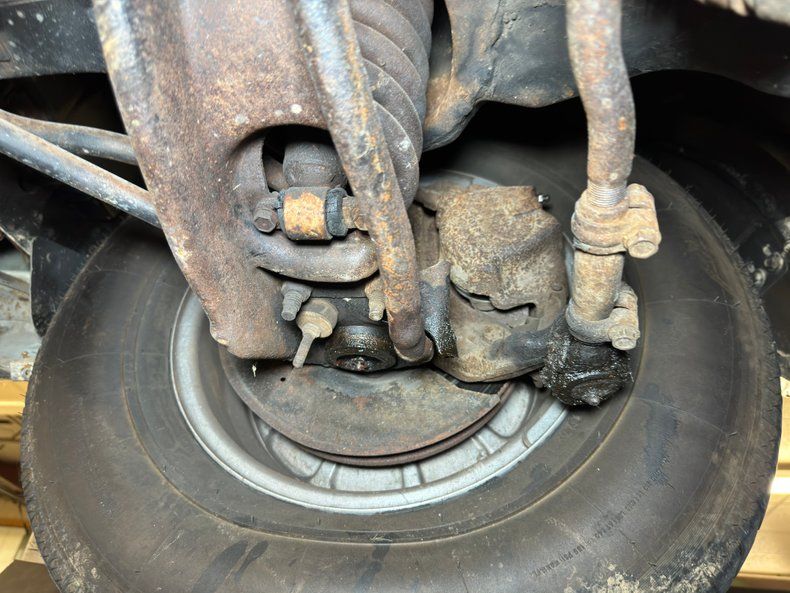 With the exception of some oil near the oil pan and some red drops on the transmission pan, the underside is relatively clean and replete with surface rust in the usual areas including the exhaust, driveshaft, wheel components, and inner bumper and body panels. We observed no invasive rust. The single exhaust flows through a stock style muffler and then exits unseen behind the bumper. Coil springs in front and a 4 link with coil springs make up the suspension configuration.