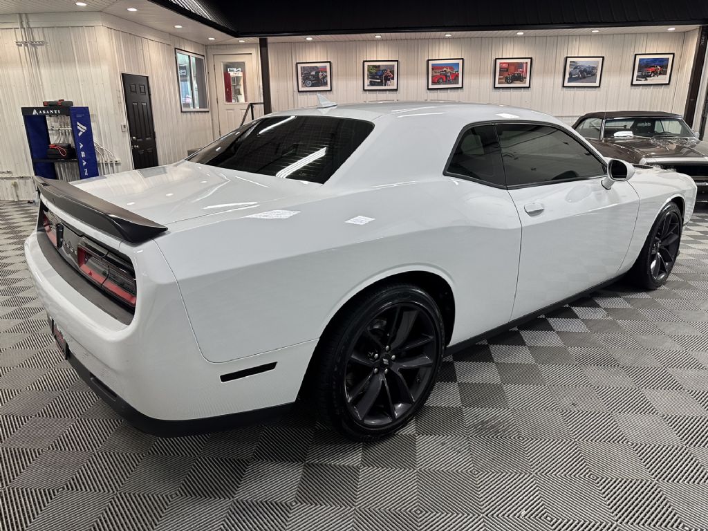 This 2019 Dodge Challenger R/T Scat Pack is a powerful muscle car that combines retro style with modern performance. Dressed in striking White Knuckle exterior paint and featuring a Black interior with cloth performance seats, this Challenger is powered by a 392 HEMI V8 engine producing 485 horsepower. The engine is paired with a 6-speed manual Tremec transmission, ensuring an engaging driving experience.