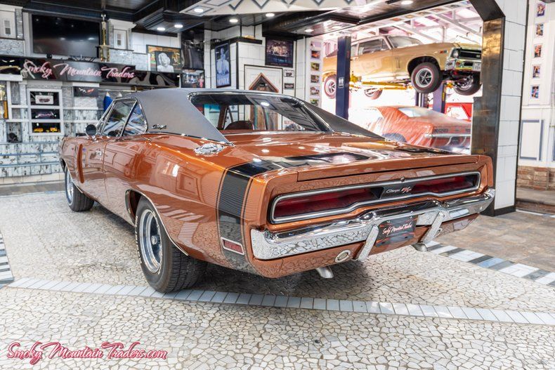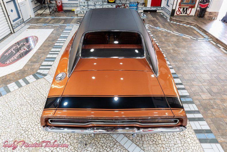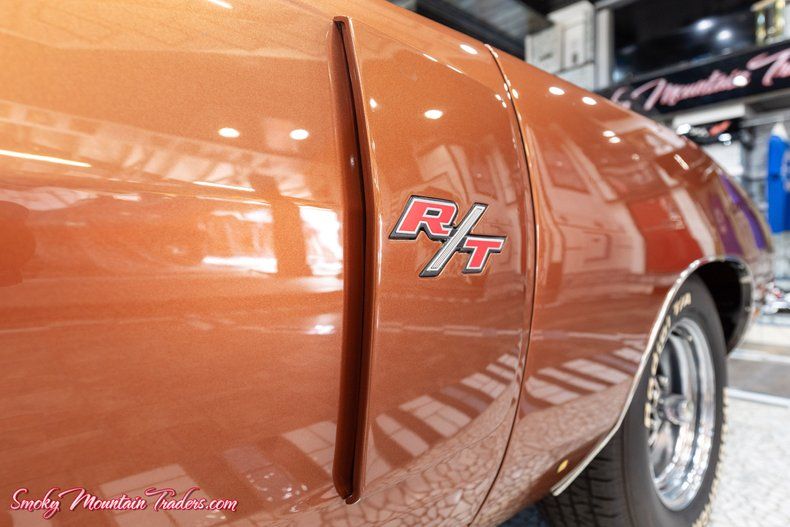 Here we have a 1970 Dodge Charger R/T for sale. This car has undergone a meticulous frame-off restoration resulting in one of the nicest Chargers in the country. There is a photo album that comes with it documenting the restoration process. It's powered by the matching numbers driveline and finished in a stunning color combo. If you're in the market for a top-of-the-line pedigree Dodge Charger RT then you won't want to miss out on this one that's guaranteed to turn heads everywhere you go! In the following paragraphs, we will briefly describe this Dodge's exterior, interior, and driveline, but first we would like to tell you a little about us. Smoky Mountain Traders is a classic car dealer in east Tennessee. We are family-owned, operated, and own our entire inventory, no consignments, and only deal in muscle cars and vintage autos. You can always count on us to have 70 to 80 cars. We pride ourselves in buying the highest quality classics and selling them to you at a price that no other dealer in the country can compete with. For more information, pictures, or questions, call our office at (865)988-8088 or visit our SmokyMountainTraders website. We will start off with the exterior of this Charger. The body on it is laser straight down the sides and all the body lines flow seamlessly from front to back. Countless hours were spent prepping this car during restoration, showcased by the F5K Dark Burnt Orange Metallic paint that is the Factory Option. It's accented by the V8X Bumble Bee Stripes, V21 Performance Hood Treatment, and V1X Black Vinyl top, both factory options. The paint was redone in base coat clear coat and has been polished out to a mirror finish that's slick as a ribbon. This '70 has the working hood signals along with having the factory hood tie down option. Both the front and rear bumpers have a brilliant finish. The drip rail molding, wheel opening molding, and belt line molding is all beautiful as well. We can see the grill is in excellent condition along with the headlights that are working as they should. All the glass is excellent as well along with having had all new weather stripping and seals installed. To finish off the stance it's sitting on a set of 15" Magnum 500 wheels with 8" Wheels on the Front and 10" Wheels on the Back. They are riding on a set of BF Goodrich Radial T/A White Letter Tires. Next, we will look at the interior of this R/T. On the inside it's done in the factory option as well with the Burnt Orange color scheme the provides the perfect complement to the exterior. The door panels are all excellent along with the cranks and armrest. It features a driver-side remote mirror. All new carpet and headliner were installed as well and they both have an excellent fit. The factory bucket seats and rear bench seat were all redone with new padding, springs, and covers. We can see the center console is in excellent condition as well and features the wood grain accents while also housing the Four Speed Pistol Grip Shifter. Looking at the gauges we can see how well this car has been cared for because they all look amazing and are working as they should. Inside the trunk is all rock solid and detailed out in body color. It's finished out with the correct trunk liner, jack, and spare. Finally, we will get to the driveline of this Dodge. Under the hood, the same meticulous approach that is evident on the rest of the car is clear here as well. It has the matching radiator support along with having the original fender tag. The power comes from the Matching Numbers U Code 440 V8 that's set up with the original 2951736-1 Intake and original Carter 4737S. It's dressed in the factory styled valve covers and air cleaner with the 440 Magnum call out. This Charger RT comes with Power Steering and for the exhaust, it has the correct Manifolds with new 2 " dual pipes with the H Pipe and Xlerator turbo style mufflers. When we look it you can see they did a phenomenal job with the rotisseries resto as they floors are rock solid and just as slick as the top. We can also see that they welded in frame connectors and did an excellent job with the installation before paint. All new fuel and brake lines were installed along with a new gas tank. The 440 U Code engine runs through the Matching Numbers D21 Heavy Duty Four Speed Transmission and the original A33 Track Pak Dana 60 Rear End with 3.54 Gears. On the highway, you couldn't ask for a better running and driving Charger! It runs out phenomenally and handles with ease. If you're in the market for a top-of-the-line pedigree Dodge Charger RT, then you won't want to miss out on this one! If we can help you in any way with questions or a specific picture, you can call our office at <a title= "CallUs" href='tel: 1-865-9888088'>(865) 988-8088. or you can e-mail us at Sales@SMTClassics.com mailto: sales@smtclassics.com.