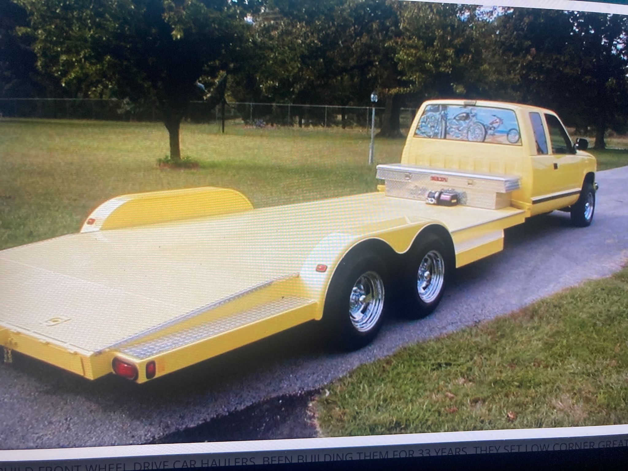 THESE TRUCKS SET LOW AND CORNER BETTER THAN ANY OTHER HAULER,, AND GET EXCELLENT GAS MILEAGE. WEVE BEEN BUILDING THEM FOR OVER 30 YEARS. WEVE GOT THEM FROM CALIFORNIA TO MAINE AND FROM WASHINGTON STATE TO FLORIDA. TRUCK RUNS STRONG. THIS IS ONE WE BUILT FOR OUR OWN USE, SO IT HAS A FEW MORE GOODIES. FLY IN AND DRIVE HOME OR DRIVE IN AND HAUL YOUR CAR HOME. NO MORE WIEGH STATIONS AND YOU TAG THEM AS A PICKUP.THESE TRUCKS OUT RUN ANY HAULERS ON THE ROAD BECAUSE THEY ONLY WIEGH 500 LBS MORE THAN THE ORIGINAL TRUCK. THERE ARE SOME EXTRA PICTURES OF SOM OF THE OTHER TRUCKS WEVE BUILT, AND ONE HARLEY HAULER WE BUILT FOR THE HARLEY SHOP IN SAN DIEAGO CALIFORNIA