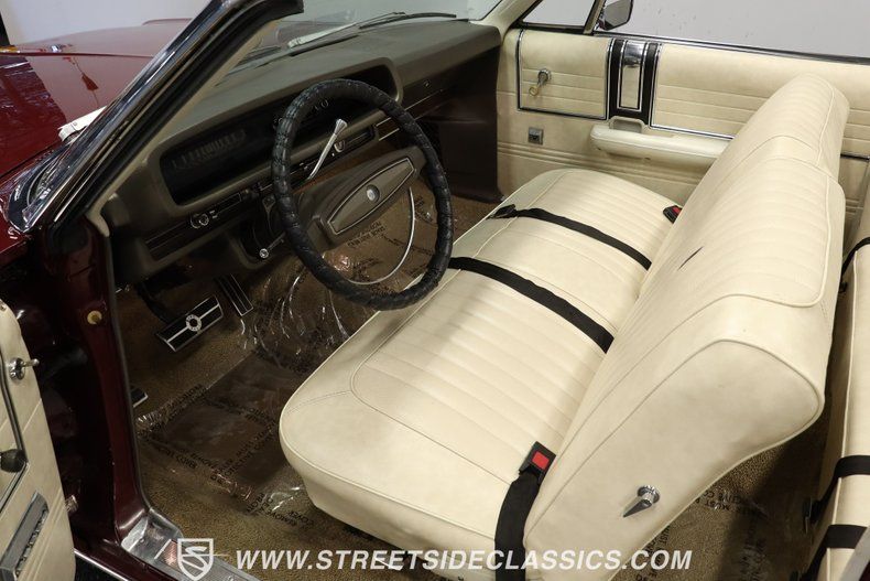 390 V8 Engine C6 3-Speed Automatic Transmission Four-Barrel Autolite Carburetor Power Front Disc Brakes Power Steering Single Exhaust System Custom Burgundy Paint White Power Convertible Top 15-inch Wheels Cooper Trendsetter SE 215/75R15 Whitewall Tires Chrome Bumpers and Trim Chrome Side View Mirrors Dual Headlights White Interior with Bench Seating Power Windows Wood-grain Dash Trim Original Gauges AM Radio Column Shift Touch-up Paint
