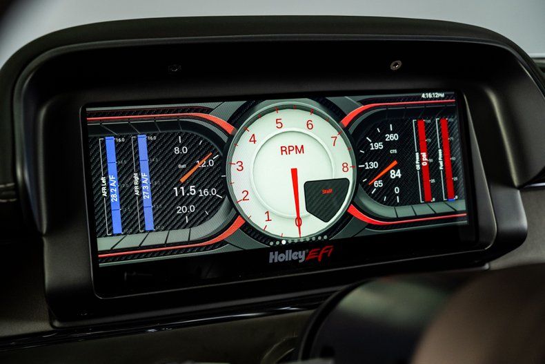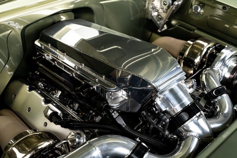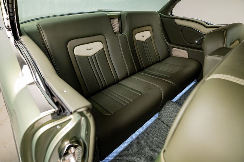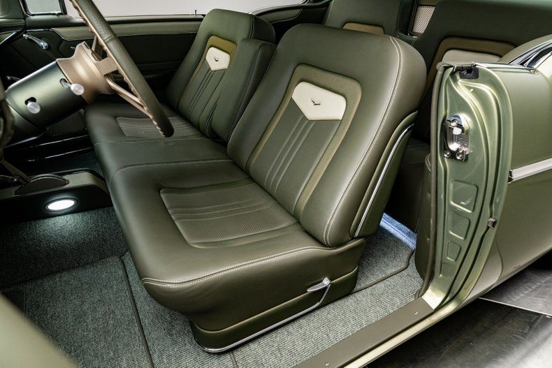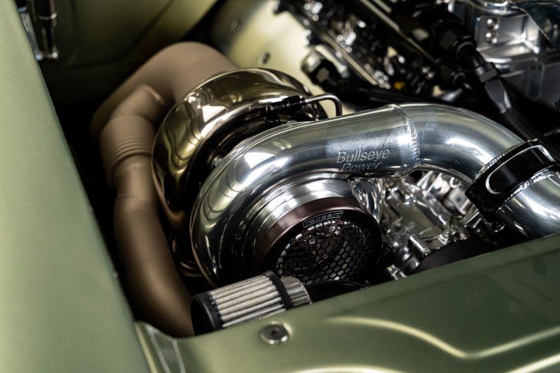 Inside, the custom leather green bench seat interior is a true work of craftsmanship, marrying classic style with modern luxury. A Holley digital touchscreen dash keeps you in control of every performance setting, while the in-dash selectable engine tune allows you to fine-tune your driving experience at the touch of a button. With features like push-button start, power windows, and a custom upholstered trunk complete with hand-fabricated subwoofer enclosures and dual hidden batteries, this car offers the ultimate in both luxury and performance.
