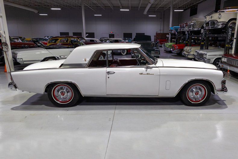 This 1962 Studebaker Gran Truismo Hawk sports a European design influences with fantastic options and is ready to become your next great American classic! By the early 1960s, Studebaker was struggling as evidenced by a sales drop of over 20 percent in 1961 compared to 1960. Perhaps an even more obvious showing of Studebaker's financial troubles is best shown by a comparison of its sales of 103,000 units in 1961, compared to Chevrolet which sold 343,000 Bel Air models; yes, you read that right, a single Chevrolet model outsold the entirety of Studebaker's lineup in 1961. Looking to shake things up, Studebaker's newly minted president, Sherwood H. Egbert, turned to his friend Brooks Stevens, a renowned industrial designer who transformed Willys' passenger car line in the mid-50s, to restyle Studebaker's aging Hawk line. The resulting car was sporty yet luxurious, modern yet timeless, and European-looking but still proudly American. In addition to a brand-new look and feel, the Hawk name was also updated from the standard Hawk to the Gran Turismo Hawk (or GT Hawk for short). The new 1962 Studebaker Gran Turismo Hawk was introduced to the public on the evening of Sunday October 29, 1961, during an advertisement on the famous "Mr. Ed" television program and the next day the '62 GT Hawk was available for public viewing in Studebaker's dealerships nationwide. Despite initially being based on Raymond Loewy's gorgeous '53 Starliner Coupe, the 1962 Gran Turismo looked like a brand new car from nearly every angle, both inside and out. At the nose, a brand new stamped grille with large heavy chrome surrounding band gave the new GT an elegant European look up front. Perhaps the most notable changes were visible from the Gran Turismo's side profile. The roofline was flattened and squared off, further modernizing the GT Hawk's side silhouette. The side beltline trim was also removed in 1962 and replaced with bright rocker panel moldings, providing for a cleaner, updated look as well. Stevens also removed the Hawk's b-pillar returning the Hawk to an open hardtop look, something not seen in the Hawk line since 1958. The rear-end treatment was also updated considerably. Stevens' design was quick to remove the outdated-looking fins on rear quarter panels. The decklid also sported updated trim comprised of a with a simulated grille design. The rear window was also modernized with a new recessed appearance, completing the modernization of the Hawk's exterior. The GT Hawk's interiors were also upgraded considerably during the major '62 redesign. 1962 was actually the second year for bucket seats in the Studebaker Hawk and the design for 1962 was significantly updated from the previous year and now featured a center console with a small storage compartment and ashtray incorporated into the layout. The other substantial update occurring in the '62 Gran Turismo's interior was the new-look, woodgrain-trimmed, three-panel instrument cluster that almost looked like it was straight out of an airplane's cockpit with a touch of European luxury. While the new '62 Gran Turismo Hawk outsold the '61 Hawks by more the 2.5 times, a mere 9,335 GT Hawks were produced in 1962 which makes this particular example quite a rare piece of automotive history. This particular Gran Turismo comes to us from the hands of a southern based collector who clearly took great care of this classic Studebaker while under their stewardship. Under the hood on this '62 GT Hawk is a 289 cubic inch Studebaker V8 fed by a single 2 barrel carburetor that together were said to have created 210 horsepower when new. The Studebaker 289 is mated to an Automatic transmission that makes this Gran Turismo an easy car for just about anybody to take for a spin around the block. Exhaust exits this Studebaker's power plant via dual exhaust setup that generates a terrific throaty sound out of the rear tailpipes. This '62 Studebaker GT is loaded with options! With power steering, squeezing into a tight parking space at the local car show or drive-in is almost effortless and can be accomplished one-handed. A pair of chrome outside mirrors further help with parking efforts and improve the overall driving experience because you have improved visibility from the cockpit of this classic Studebaker. Riding on a set of whitewall radial tires mounted on painted steel wheels and accented with full Studebaker wheel covers, this Gran Turismo Hawk has a fantastic look and even better ride cruising down the road. The brightwork around the exterior of this Studebaker GT looks great! The body of this Studebaker Hawk has been refinished in beautiful Ermine White paint that completes the exterior look of the car. The interior of this 1962 Studebaker Gran Turismo Hawk is absolutely gorgeous! The front bucket seats and center console, along with the rear bench seat have been restored in red upholstery that provides a European-inspired look. The matching red and stainless trimmed door panels, red carpeting, steering wheel, and black padded dash all appear to be in wonderful shape as well and all retain a beautiful stock appearance. The three-panel woodgrain-trimmed instrument cluster provides a wide array of instrumentation including a 120 MPH speedometer, 6,000 RPM tachometer, oil pressure gauge, amp gauge, temperature gauge, and fuel gauge, along with a clock, odometer, and turn signal indicators. The perforated metal dash is finished off with a glove box, push-button AM radio, and various other controls. Whether you're buying your very first collector car or you're adding to an existing collection of classic cars, this 1962 Studebaker Gran Turismo Hawk would make an excellent choice. Give Ellingson's a call today at 763-428-7337!