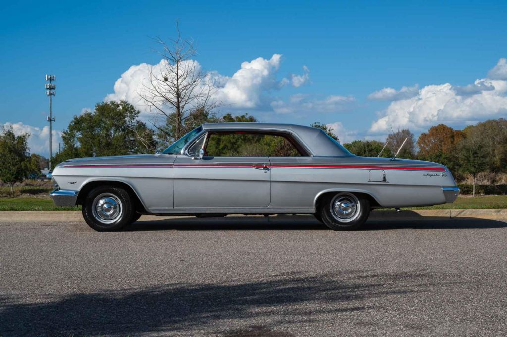 1962 Chevrolet Impala " True Survivor with Award-Winning Originality This 1962 Chevrolet Impala is an exceptional survivor, preserved in remarkable unrestored condition. Scoring an impressive 972 out of 1000 points at the 39th National Impala Meet in the Unrestored Original Condition class, this car is a testament to Chevrolets timeless craftsmanship and meticulous care by its owners. Retaining its believed-to-be original silver paint and striking red interior, this Impala exudes authenticity and originality. Under the hood, the original 283 V8 engine is paired with its factory-installed 2-speed Powerglide transmission, delivering smooth and reliable performance. With only 45,657 miles believed to be original, this classic has been garage-kept its entire life, ensuring its preservation. Riding on dog dish hubcaps, this Impala maintains its period-correct look and feel. The car runs and drives excellently, making it not only a showpiece but also a joy to experience on the road. Included with the vehicle are extensive original documents, such as the judging sheets, owners manual, Protection Plan, Body by Fisher Special Instructions, and much more. This is a rare opportunity to own a truly original, highly awarded 1962 Chevrolet Impala. A must-see for collectors and enthusiasts alike, this survivor car represents the pinnacle of classic American preservation. Dont miss your chance to own this exceptional piece of history! While we do our best to provide the highest quality muscle cars with an honest and reliable description and realize the importance of transparency when selling vehicles. That being said, we have not built, modified, changed or personally owned this vehicle. Whether this vehicle is consigned or owned by Past & Present Motor Cars we do not know the vehicles complete history since new. We want to be clear and try to answer any questions our customers might have prior to purchasing. Additionally, we not only welcome but we encourage 3rd party independent inspections. Please inquire prior to purchase to make sure the advertised vehicle has not already been sold. We list our vehicles on multiple websites and a vehicle can sell at any time. If a customer chooses to purchase sight unseen (many of our customers choose this option) the customer accepts the vehicle AS IS and WHERE IS and understands we cannot address concerns after purchase. For this reason, it's important all concerns are addressed prior to purchase. We make every effort to present accurate and reliable information, but use of this information is voluntary, and should only be deemed reliable after an independent review of its accuracy, completeness, and timeliness. It is the sole responsibility of the customer to verify the existence of options, accessories and the vehicle condition before time of sale. Financing is Available with low rates and Vehicle Shipping is available from our Showroom to your Garage. A Classic Car Warranty is Available for Purchase from a 3rd Party. Please speak to our Sales Associate or Company Representative for more information. Our team is working and available anytime by Phone or Text for your convenience at 407-559-7759. Thank you for your interest!