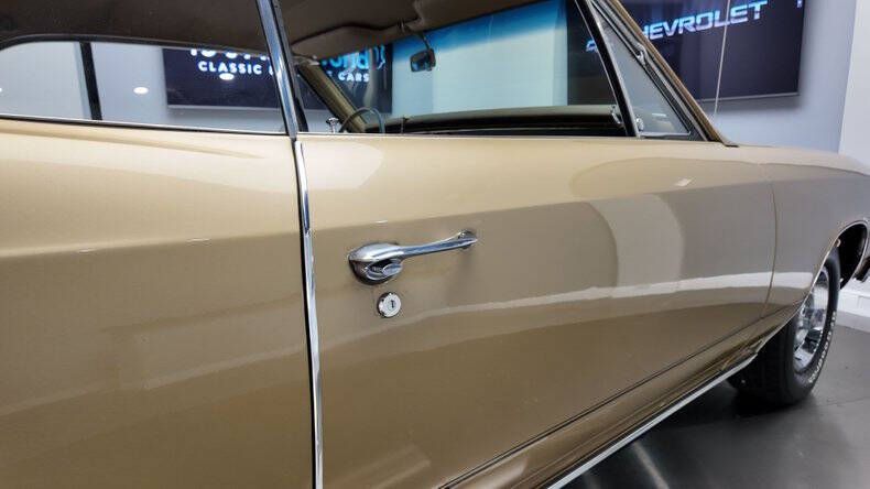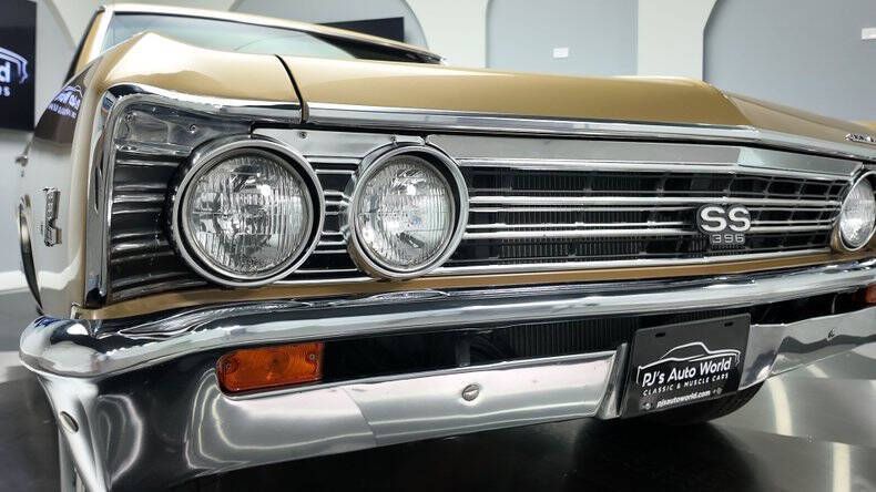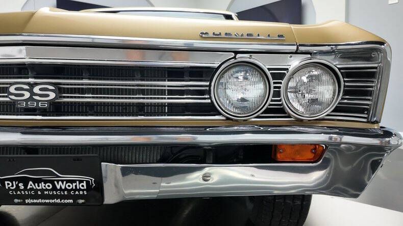 PJ's Auto World is pleased to offer this 1967 Chevrolet Chevelle Super Sport for Sale. Real 138 Code SS. Numbers matching L35 396 Cu In engine factory rated at 325 horsepower, Holley 4-barrel carburetor, aluminum radiator, dual exhaust, chrome valve covers and air cleaner, detailed engine bay, front power disc brakes, power steering, 12 bolt rearend, 14 Rally Wheels with BF Goodrich Radial T/A tires, TH400 automatic transmission, beautiful Granada Gold exterior, black accenting pin stripe, scooped hood, driver's chrome sport mirror, gold bench seat interior, tach and auxiliary gauges, AM/FM radio. Chevelles are one of the most desirable Classics on the planet due to their amazing full frame ride and killer looks. Don't miss your opportunity to own this authentic GM Muscle Car with it's original engine! With over 45 years of dedicated service to the collector car community, we've cultivated a wealth of knowledge and experience that we're eager to share with you. Whether you're a seasoned enthusiast or a curious newcomer, our team is here to answer any questions you may have. We understand that acquiring a collector car is a significant investment, and we're committed to making the process smooth and stress-free. To that end, we offer access to financing through reputable sources, ensuring you have the best options to secure your dream car. Additionally, we've partnered with reliable shipping providers to ensure your prized possession arrives safely and securely at your doorstep.