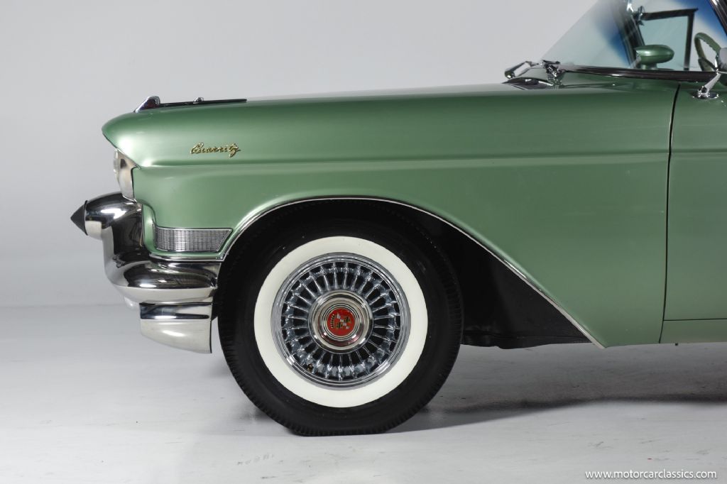 1957 Cadillac Eldorado Biarritz for sale! Motorcar Classics is proud to present the epitome of 1950s luxury with this stunning 1957 Cadillac Eldorado Biarritz, finished in elegant Elysian Green Poly. This convertible masterpiece features a matching green leather interior and convertible top, creating a harmonious and sophisticated appearance. Under the hood, you'll find a powerful 365ci V8 engine equipped with dual four-barrel carburetors, delivering an impressive 325 horsepower, all mated to a smooth-shifting Hydra-Matic transmission for effortless cruising and spirited acceleration. As one of only 1,800 Eldorado Biarritz convertibles produced in 1957, this vehicle represents a rare piece of automotive history. The older restoration has preserved the car's original charm while ensuring its continued beauty and performance.