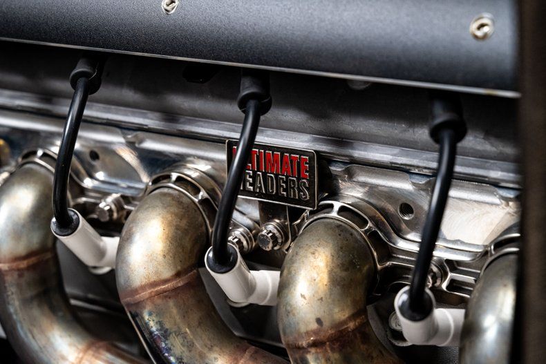Pop the hood, and you'll find a built 6.0L LS2 rated to crank out around 500 horsepower thanks to ported Precision Race Components heads, LS7 lifters, upgraded trunnion rockers, and a Howards ASA-spec cam. GM fuel injection pairs with proven coils and Accel wires, while custom stainless headers from Ultimate Headers handle exhaust. A KWiK Performance serpentine system drives an aluminum water pump, Powermaster alternator, and Sanden AC compressor. Cooling comes from a custom Superior Radiator with a puller fan and polished expansion tank.