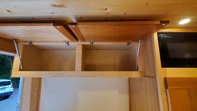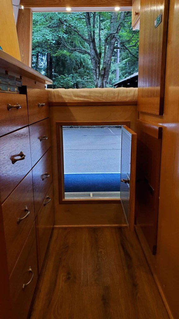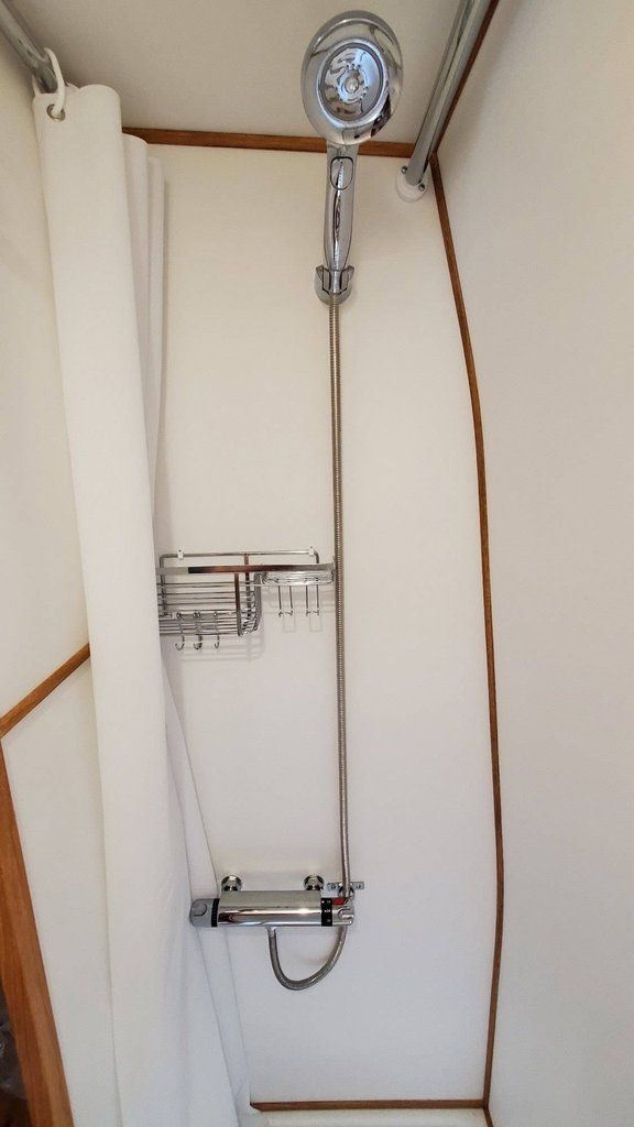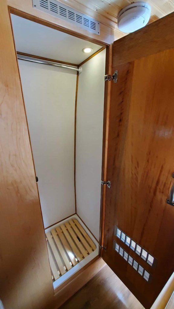 " THE WALLS OF THE SHOWER AND CUPBOARDS ARE MADE OF SOLID MAPLE, DOORS IN MAHOGANY