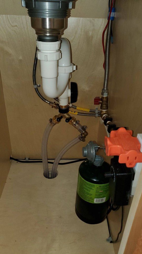 -7-GALLON GRAY WATER TANK" WATER PUMP-BOSCH ELECTRIC MINI-TANK WATER HEATER TRONIC 3000 T 4-GALLON NEW PORTABLE INDOOR OUTDOOR TOILET, 5.8 GALLON WASTE TANK-OUTDOOR SHOWER KIT