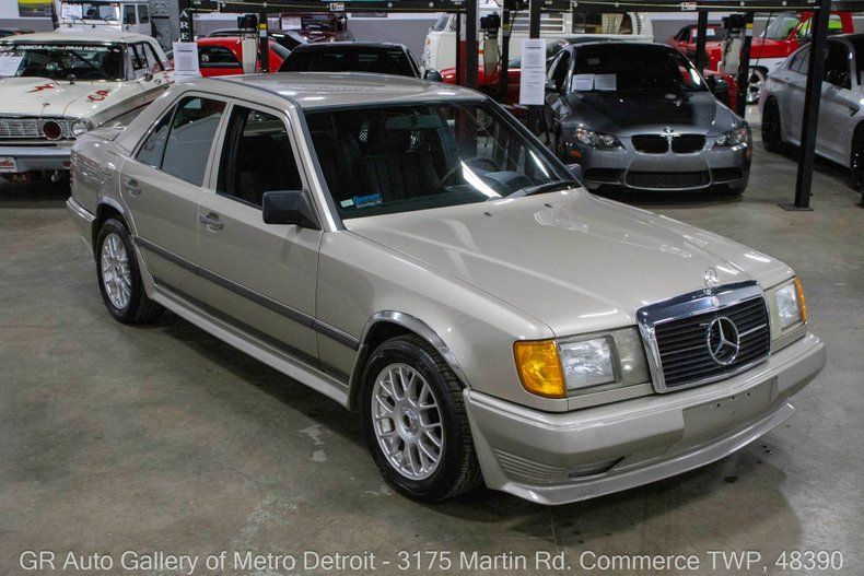GR Auto Gallery is pleased to present this unique and rare 1986 Mercedes-Benz 230E for your consideration. An extremely rare grey market European example, modified in Germany during the 1980s. This distinctive vehicle features a classic Tan exterior complemented by a sleek Dark Blue cloth Euro interior with heated seating. Powered by a reliable 2.3-liter inline-4 engine (M102 982), paired with an automatic transmission, this 230E has 142,247 miles on the odometer. Notable features include a full ground effect kit by HF, TSW Hockenheim R wheels, new Bosch fuel pump, powered and crank windows, intermittent wipers, wood grade accents, Alpine aftermarket stereo, dual climate control, spacious trunk, and a stylish slick top roof. Drive it out of our showroom or have us assist with shipping it to you anywhere in the United States! Don't hesitate to call us with any questions or for more information.