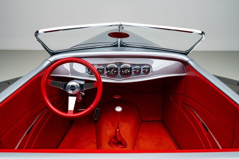 The body is a Rat's Glass fiberglass shell finished in a glossy silver that highlights the car's classic lines. A Rootlieb hood and Duval-style windshield keep things true to the era, while the electric trunk lid adds some hidden convenience. Underneath, a Painless wiring harness keeps everything clean and reliable.