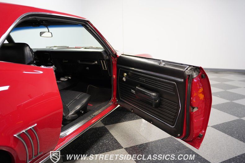 Fully restored with racing heritage, this 1969 Chevrolet Camaro Z28 wears Garnet Red paint accented by bold black racing stripes. The two-tone color combination gives this Z28 a classic muscle car look that GM perfected in the late 60s. Clean chrome bumpers and trim contrast perfectly against the glossy finish of the paint. Sitting low on 15" Crager SS wheels with 215/70R15 front and 235/70R15 rear tires, this Z28 has a planted, muscular stance that emphasizes its performance roots. Every body line shows the attention to detail that went into this Z28's full exterior restoration.