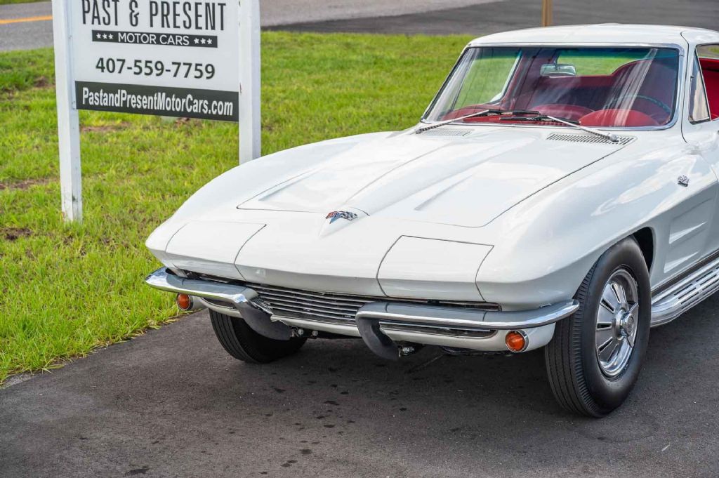 1964 Chevrolet Corvette Coupe, Original 327/ 300 Horsepower V8 Engine, Original Muncie 4 Speed Manual Transmission, This is an all Matching Numbers Corvette Coupe that was restored approximately 2 years ago, Finished in correct Ermine White with Red Bucket Seat Interior this is a great color combination, This is a rare late model 1964 Coupe that is rumored to have factory installed side pipes, The car also features Power Front Disc Brake and Vintage Air Conditioning. With Receipts available, Rare AM/FM radio option as well. While we do our best to provide the highest quality muscle cars with an honest and reliable description and realize the importance of transparency when selling vehicles. That being said, we have not built, modified, changed or personally owned this vehicle. Whether this vehicle is consigned or owned by Past & Present Motor Cars we do not know the vehicles complete history since new. We want to be clear and try to answer any questions our customers might have prior to purchasing. Additionally, we not only welcome but we encourage 3rd party independent inspections. Please inquire prior to purchase to make sure the advertised vehicle has not already been sold. We list our vehicles on multiple websites and a vehicle can sell at any time. If a customer chooses to purchase sight unseen (many of our customers choose this option) the customer accepts the vehicle AS IS and WHERE IS and understands we cannot address concerns after purchase. For this reason, it's important all concerns are addressed prior to purchase. We make every effort to present accurate and reliable information, but use of this information is voluntary, and should only be deemed reliable after an independent review of its accuracy, completeness, and timeliness. It is the sole responsibility of the customer to verify the existence of options, accessories and the vehicle condition before time of sale. Financing is Available with low rates and Vehicle Shipping is available from our Showroom to your Garage. A Classic Car Warranty is Available for Purchase from a 3rd Party. Please speak to our Sales Associate or Company Representative for more information. Our team is working and available anytime by Phone or Text for your convenience at 407-559-7759. Thank you for your interest!