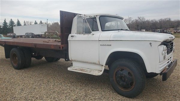 This is a 500 Series Dodge with a 22 foot 6 inch Implement bed. This truck has a 318 poly motor that runs very well. It will need brakes bled and the usual fluid checks. Has a heavy PTO driven winch. The hydraulics for the bed and winch seem to work good. Needs some glass work and some rust work. The floor structure is good but will need some floor pan tin work. The total length is 31 feet 6 inches. It has 8:25x20 rear tires and 7:50x2 fronts. Good North Dakota Title and delivery can be arranged for you.