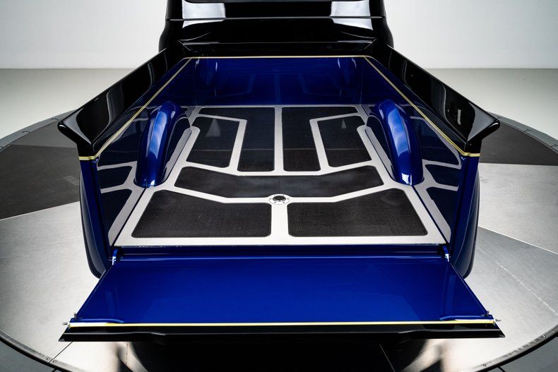 To accommodate the custom chassis planned for this build, the front fender openings were moved forward four inches, a precise but significant change that helped align the body with the updated foundation. The running boards were raised from their original position and reshaped to create a smooth, uninterrupted flow from the front to the rear fenders. Out back, the rear fenders were widened by 1.5 inches, giving the truck a more planted stance without disrupting its original character. The bed was carefully massaged to match the rest of the body's refined lines. It features a custom-restyled tailgate, a hand-formed rollpan with integrated exhaust exits, and a show-quality bed floor with an aluminum frame inlay and carbon fiber inserts.
