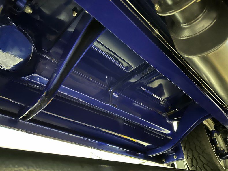 Under the hood sits a Bill Mitchell 509 cubic inch big block, topped with a polished Weiand 4-71 supercharger and an 870cfm Hardcore carburetor. With the addition of the blower, it's now rated at approximately 750 horsepower. Sanderson headers feed into a custom 3-inch exhaust system built by the Roadster Shop, flowing through Flowmaster mufflers. The engine is dressed with custom-painted and pinstriped valve covers and air cleaner to match the bodywork. Power is routed through a Tremec TKO600 5-speed manual transmission and a Ford 9-inch rear with 3.50 gears and a limited-slip differential.