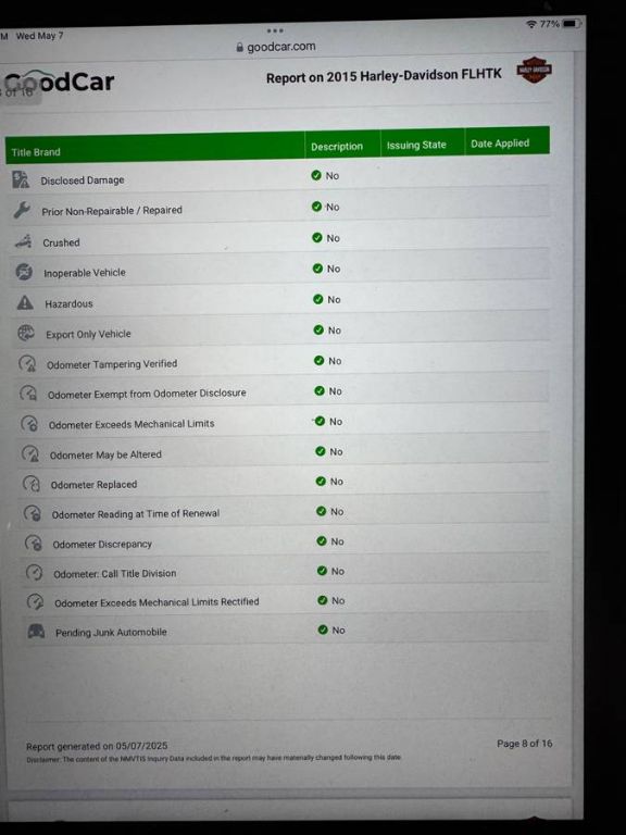 This 2015 Harley Davidson Limited Ultra Glide is a one-owner, fully loaded touring motorcycle with just 10,210 miles. Impeccably maintained and offered with a matching trailer, this bike is road-ready and equipped with a wide range of upgrades and accessories. It features custom drag pipes, Lizard lights, Screaming Eagle air filter system, heated grips, and a powerful train horn. Additional comfort and convenience highlights include a backrest with passenger air hog cushion, HD motorcycle cover, HD communication system (2 units), new tires, and a full set of trunk and saddlebag leather carrying cases. Also included are trunk compartment covers, phone and cup holders, HD air shock pump, HD battery tender, and all original manuals and CD. This is a turn-key setup for any rider looking for comfort, performance, and style.