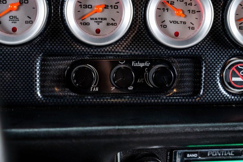 Inside, the Formula's interior is completely restored with a clean, modern vibe. High-bolster bucket seats with integrated headrests provide comfort and support, while the 3-spoke steering wheel features a custom 'Rising Phoenix' horn button as a nod to its namesake. The carbon fiber-style gauge cluster houses a full Speartech digital gauge setup, complete with a Livorsi control panel and integrated air conditioning controls. A custom center console features an American Powertrain shifter and integrated storage. And a Custom Autosound digital AM/FM radio with AUX input keeps the traditional look inside, but provides some modern connectivity.