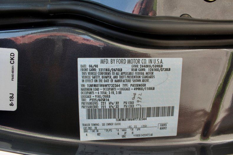 Smooth, Refined Power: The 4.6L V8 delivers 205 hp at 4,250 RPM with silky-smooth torque for effortless cruising. Classic Lincoln Luxury: Roomy split-bench leather seats up front and a plush rear bench make every drive first-class. Power seats, windows, and locks ensure passenger comfort and convenience. Timeless Presence: Vintage Styling Touches: Crisp whitewall tires, bright chrome bumpers and trim, and a distinctive black vinyl roof evoke late-'90s elegance. Modern Comforts: Ice-cold air conditioning, AM/FM cassette player with powered antenna, and a silent, float-ride suspension make highway miles disappear.
