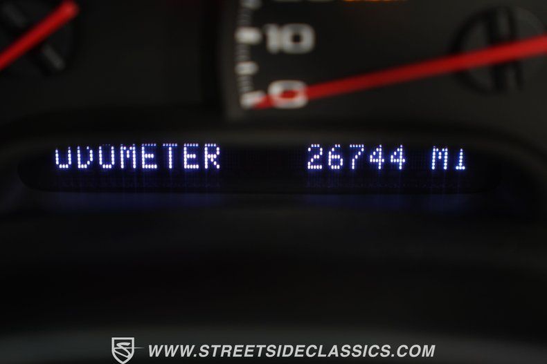 Single-owner from new with just 26,743 actual miles, this 2001 Chevrolet Corvette Coupe gleams in red paint that flows over every curve and contour. Factory 17" front and 18" rear wheels carry 245/45ZR17 front and 275/40ZR18 rear tires that fill the wheel wells perfectly. The removable hard top creates clean lines from nose to tail, while the aftermarket rear spoiler adds an aggressive finishing touch to the already dramatic silhouette.