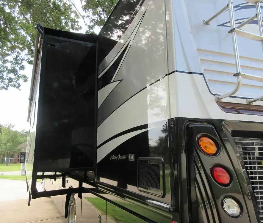 For sale is a 2017 Fleetwood Pace Arrow LXE 38K Class A Motorhome in immaculate condition inside and out, with low mileage and no accidents or damage. This luxury coach is loaded with premium features, including a 270W solar system, washer and dryer, central vacuum, and Italian leather throughout. It boasts one of the largest cargo bay and storage capacities of any motorhome on the market. The full kitchen includes a stove, full-size refrigerator, and microwave/convection oven, while the private master bedroom and two bathrooms provide ultimate comfort. Entertainment is top-notch with Dish TV, digital TV, and four TVsone outdoorswith surround sound. Additional extras include custom stained glass/mirror closet doors, extra insulation, new chassis batteries, 12" leveling pads, wheel covers, heated water hose, large propane tank, and complete hookup gear for water, sewage, and electricity. Also included are a tow bar and RV brake system, making this motorhome truly ready for the road. Also available, a 2015 Jeep Cherokee Latitude tow vehicle.