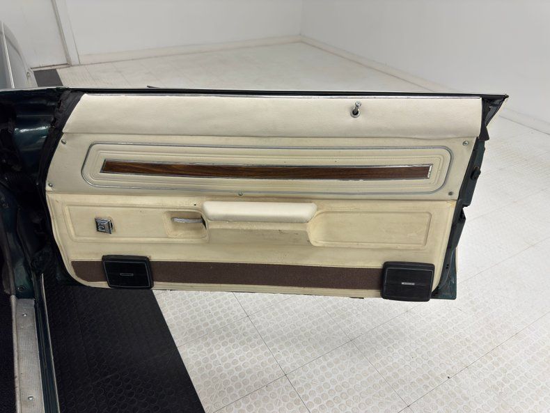 The car's Ivory interior is where you'll want to target your restoration efforts as it's in need. Much of the inside, beginning with the door panels, could use a recoating or upgrade. We note speakers added to the carpeted kick panel of each door which also have simulated woodgrain inserts on top and electric window switches, some loose. The vinyl on the split bench seat is loose at the corners and mounting points but are otherwise intact and that's mirrored on the rear bench. The header plate over the rear cabin will need some attention in addition to the aged components on the sidewalls. A simple black steering wheel leads to an instrument cluster based in a woodgrain applique backing and includes just a clock and speedometer as the main gauges. Vent sliders to the left and heater and defrost sliders to the right, over an AM/FM/Cassette player and an added triple gauge pod under the dash. Also under the dash is a switch panel with a number of toggles. With the shifter on the column, the floor is wide and open and covered in black loop carpet while the trunk is well used and houses a tonneau cover and spare.