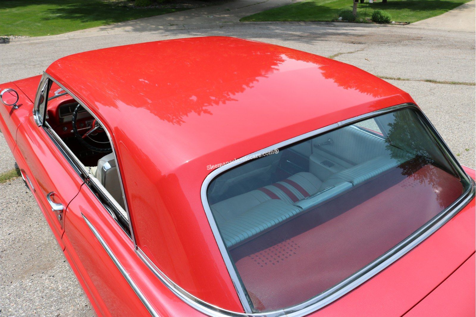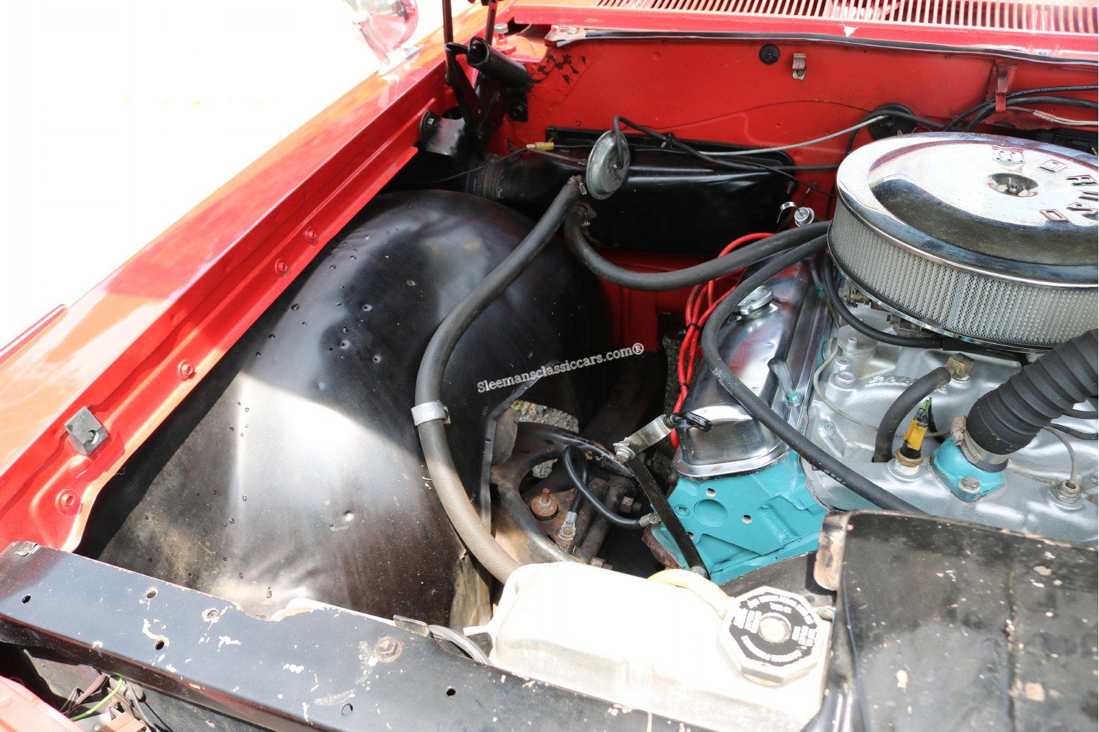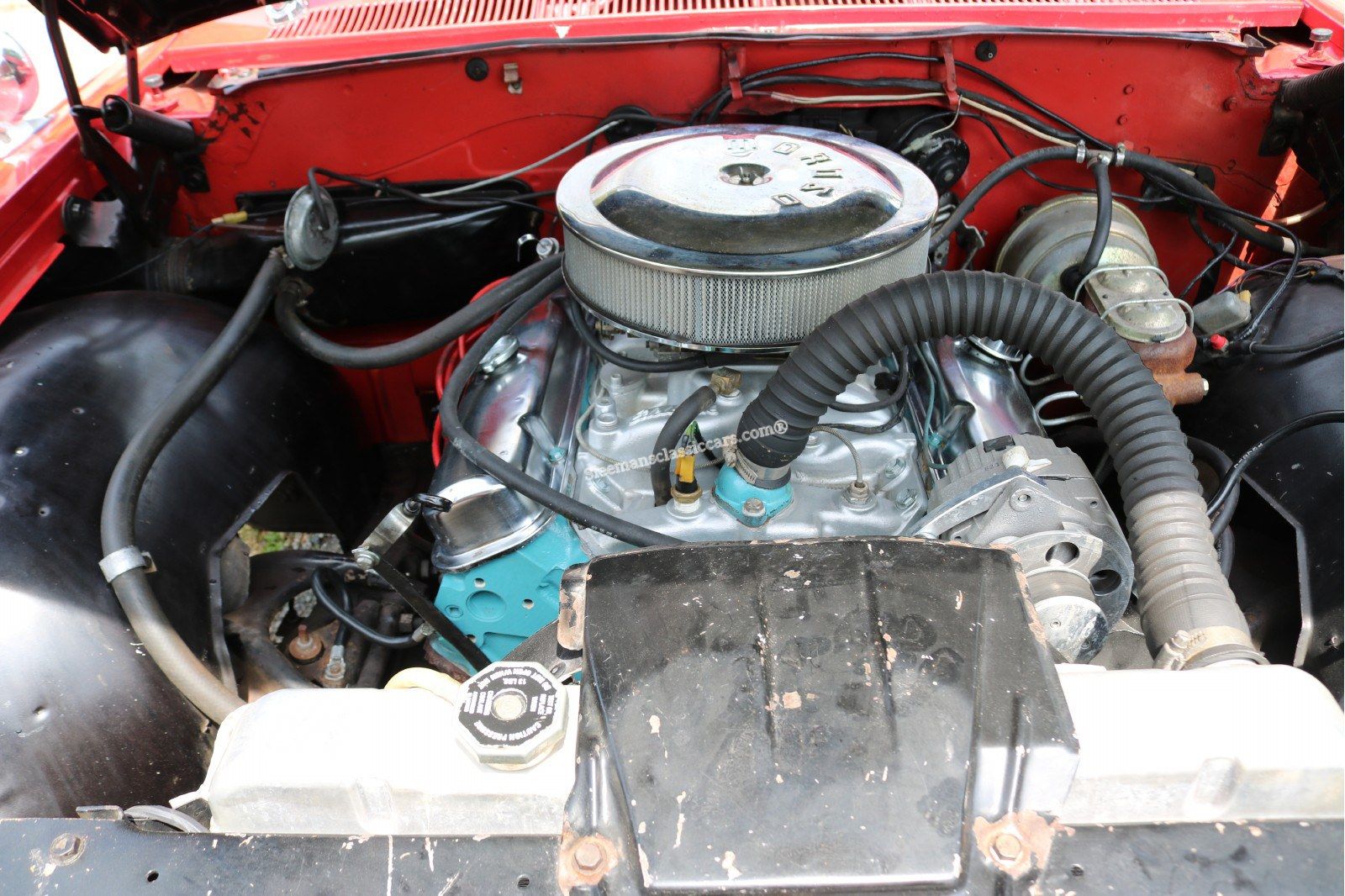 Sporting one red re-paint, Excellent glass, very nice chrome and bright work, very nice two-tone red/white vinyl interior and a great 400ci, V8 engine.