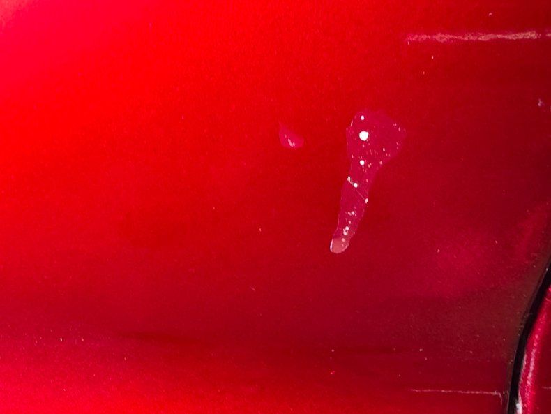 Some strong hot rod styling here begins with the removal of the '55's big front bumper, leaving a forward leaning, brick faced grin pushing towards the wind. Then, there's the paint, stunning two stage Candy Apple Red with some fantastic ghost flames that flick down the side, almost imperceptibly. Split trim characterizes the '55 and a vertical extension meets the shoulder line at slight dip in the otherwise straight line. And of course, the matching trim around the fuel door is epic. Out back, a sizable painted cartoon mouse motor breaks up a sea of candied red and dual exhaust tips symmetrically exit with the bumperettes while blue dot tail lights add some subtle coolness. 15-inch Cragar SS wheels wear staggered meats with a mid 2022 date code. Imperfections include some bubbles, chips, and touch ups.