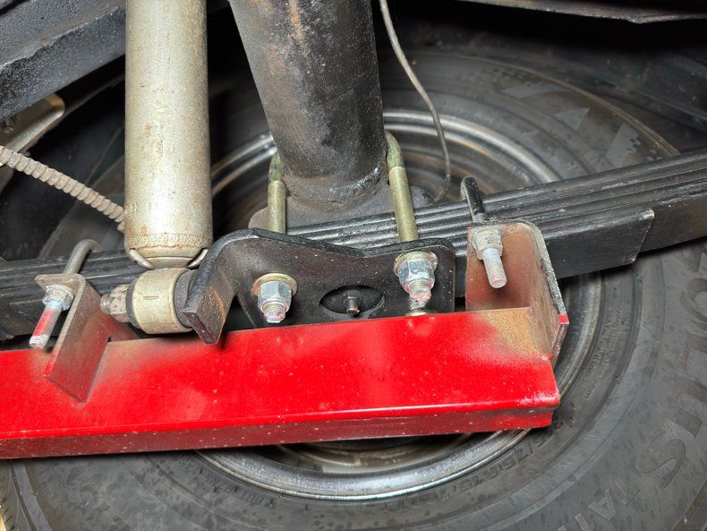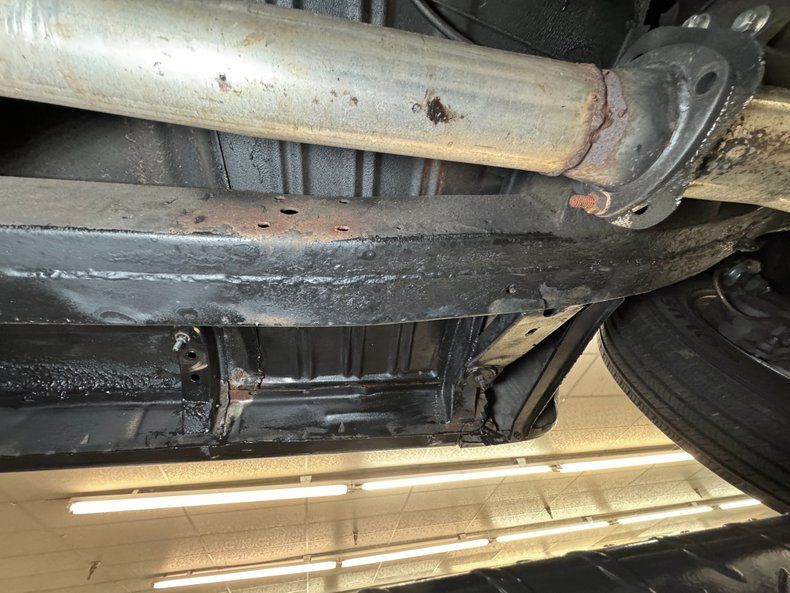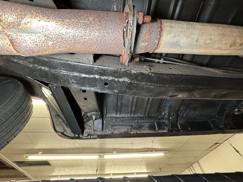 Clean underneath, more driver quality than the topside, and some old school traction bars assist the leaf springs in back. Up front, its coil spring suspension and dual exhaust travels through FlowMaster mufflers on their way to chrome exit tips, but also have the option of cut outs just prior to the mufflers. There's evidence of some encapsulated rust repair on the inner rockers while the undersides of the doors are clean.