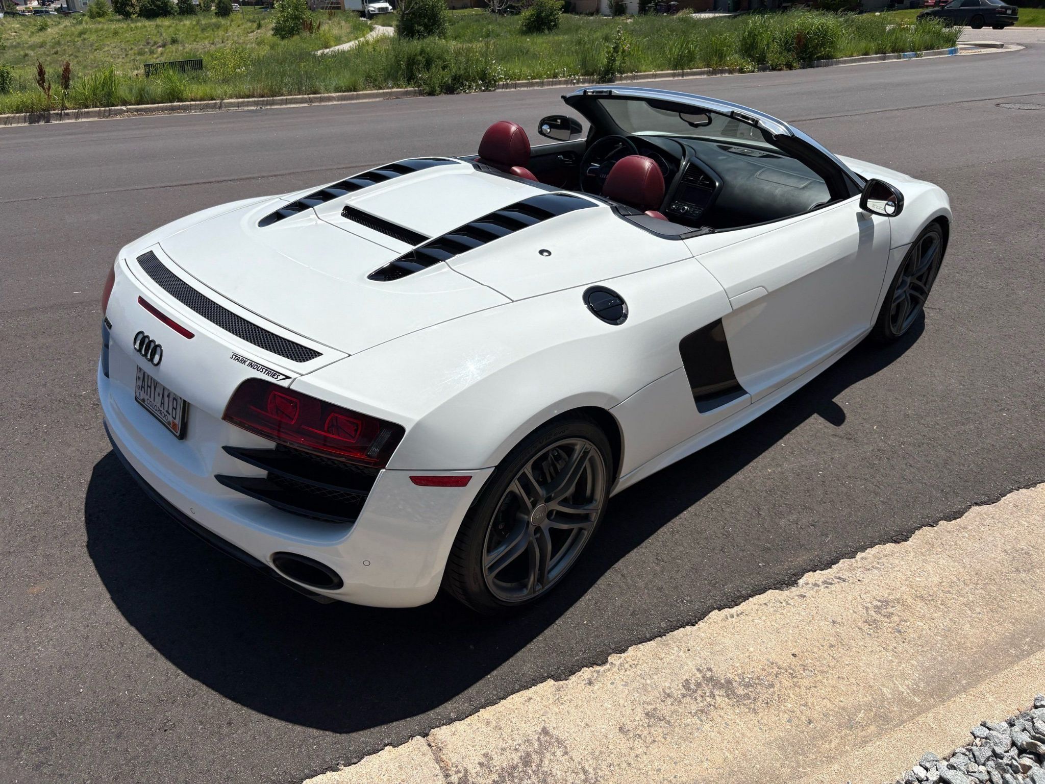 2012 Audi R8 spyder done in White over Red leather. Has the 5.2L V10 that put out 525HP with the R-tronic transmission and all wheel drive. This is a very clean R8 but has a rebuilt title to light damage to the front. Has nice options like: carbon ceramic brakes, Red painted brake calipers, back-up camera, Carbon fiber trim, Red leather, upgraded Audi wheels, Bang and Olufsen sound, and so much more. The black soft top is in very nice shape and the power top works very smooth. Call Weisco Motorcars for more info as this R8 will not last long at this crazy low price.