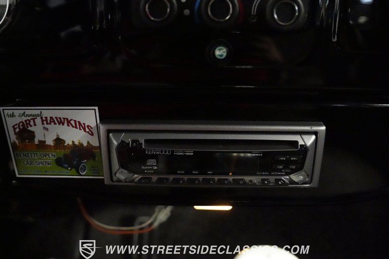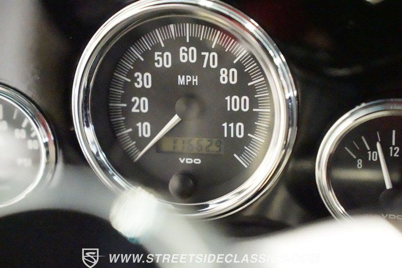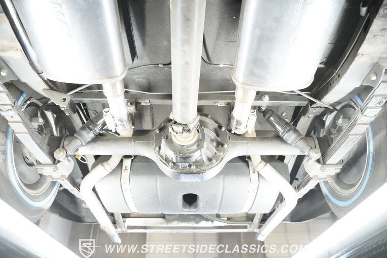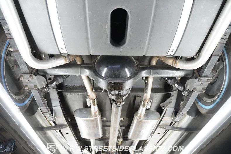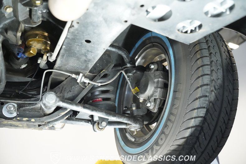The 350 cubic inch V8 engine comes equipped with an Edelbrock 4-barrel carburetor mounted on an Edelbrock intake manifold. A 700R4 4-speed automatic transmission handles gear changes efficiently. The upgraded front suspension uses an independent setup with tubular upper and lower control arms, coilovers, and rack and pinion steering for responsive handling. At the rear, a 9" Ford axle with leaf springs and air shocks manages the load. With four-wheel power disc brakes and dual exhaust with street flow mufflers.