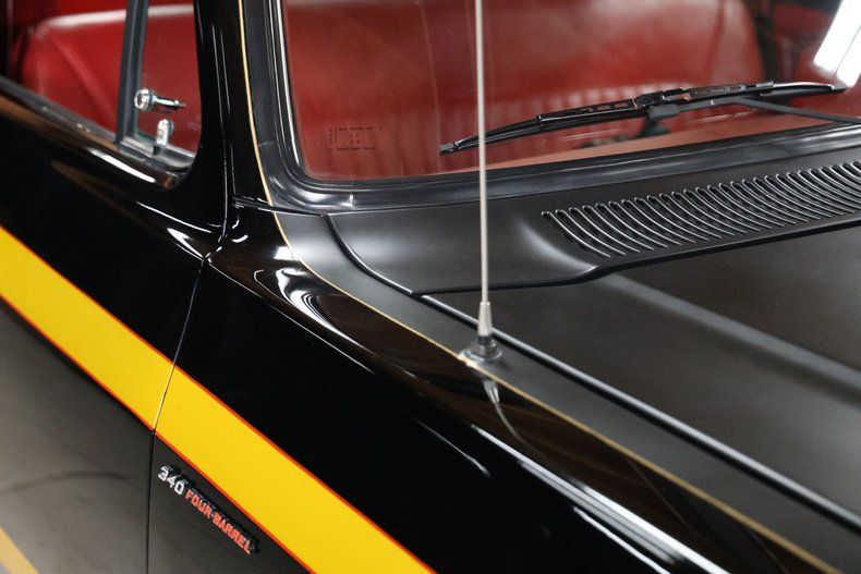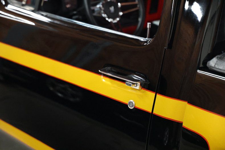 Visually, this D-150 is nothing short of a masterpiece. Custom-painted in a striking black with gold and red accents along the sides, it commands attention wherever it goes. The fiery red interior complements the bold exterior, creating an unforgettable driving experience.