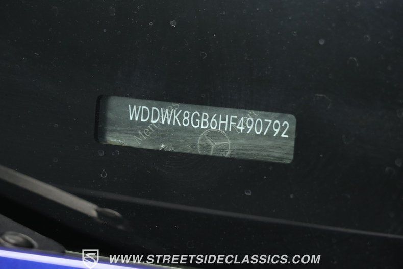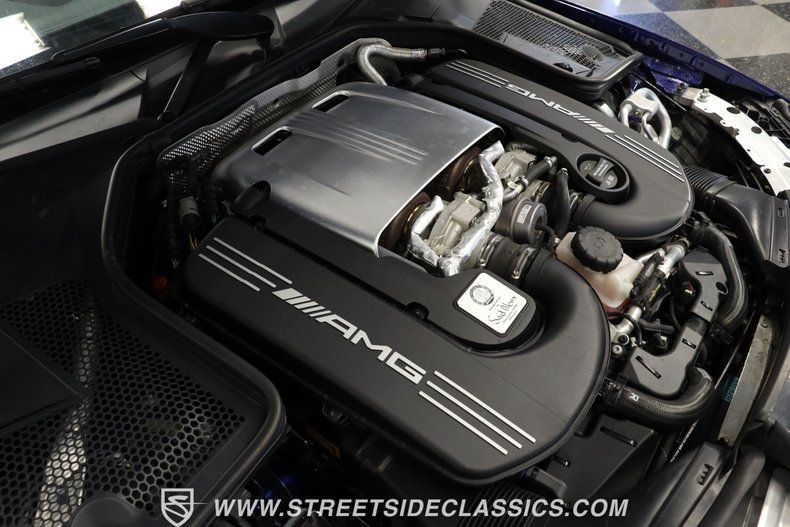4.0L V8 Biturbo Engine 7-Speed Automatic Transmission (7G-Tronic) Fuel Injection MacPherson Strut Front Suspension Independent Rear Suspension 4-Wheel Power Disc Brakes Dual Exhaust System with Dual Tips RWD (Rear Wheel Drive) Anti-Lock Brakes Brilliant Blue Metallic Paint Black Cloth Power Convertible Top with Glass Window 19" Mercedes-Benz Black Wheels 255/35ZR19 Front, 285/30ZR19 Rear Pirelli Tires Weather-Stripping Fresh and Pliable Anthracite Black Interior with Leather/Microfiber Bucket Seats Power Heated Seats Power Windows, Locks, and Mirrors Navigation System AM/FM/AUX Stereo with Bluetooth Console Shifter Air Conditioning Cruise Control Back-Up Camera Anti-Theft System Owner's Manual Maintenance Records Driver, Passenger, Side Airbags