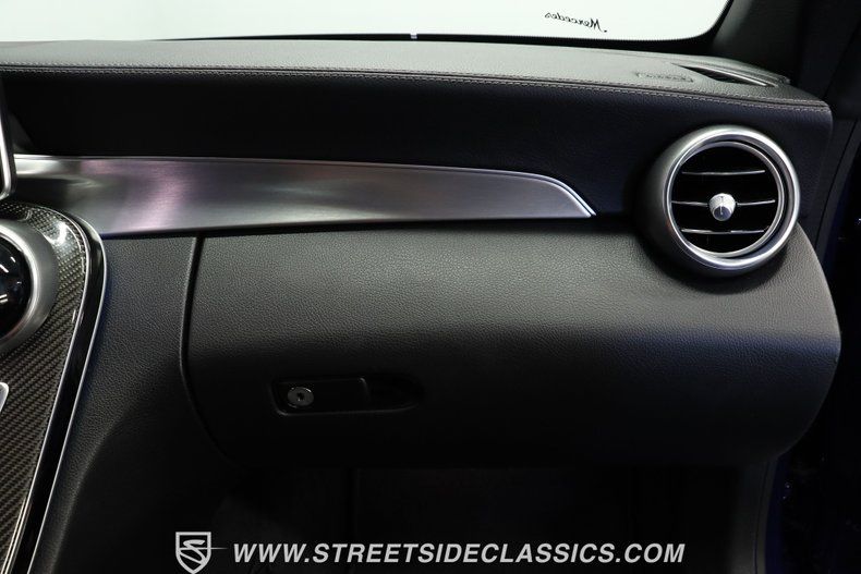 Luxurious Anthracite Black leather with microfiber suede inserts covers the supportive bucket seats inside this C63 AMG Cabriolet. The clean dashboard houses a flatscreen display with navigation and clear digital gauges providing vital information. A well-designed center console puts all controls within easy reach. Power windows, locks, heated seats, mirrors, and air conditioning add convenience while the AM/FM/AUX stereo with Bluetooth connectivity provides entertainment. The trunk area remains very clean and organized.