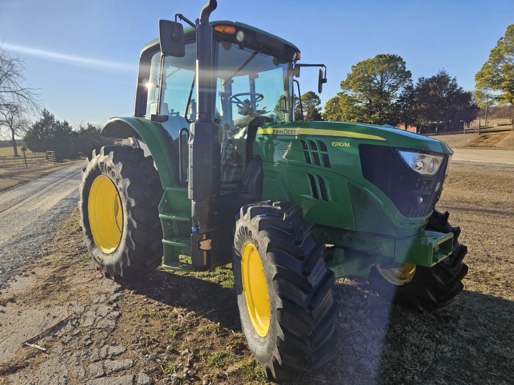 2019 John Deere 6110M This 2019 John Deere 6110M is a clean, ready-to-work 4WD tractor. It features a cab with air, 24-speed power quad transmission, joystick and valve controls, and all-around new Firestone radial tires. While it doesnt include a loader, it's well-equipped and in good shape for field use. Located in Paden, OK 74860 For more information, please call 833-265-6113 and mention ID 58410