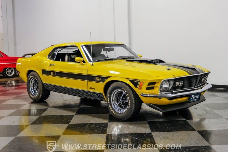 Authentic muscle with modern upgrades make this 1970 Ford Mustang Mach 1 an exceptional driving machine. From its eye-catching yellow metallic paint to its powerful 302 V8 and driver-friendly 5-speed manual, this fastback brings together the best of classic styling with thoughtful performance enhancements. Call today!